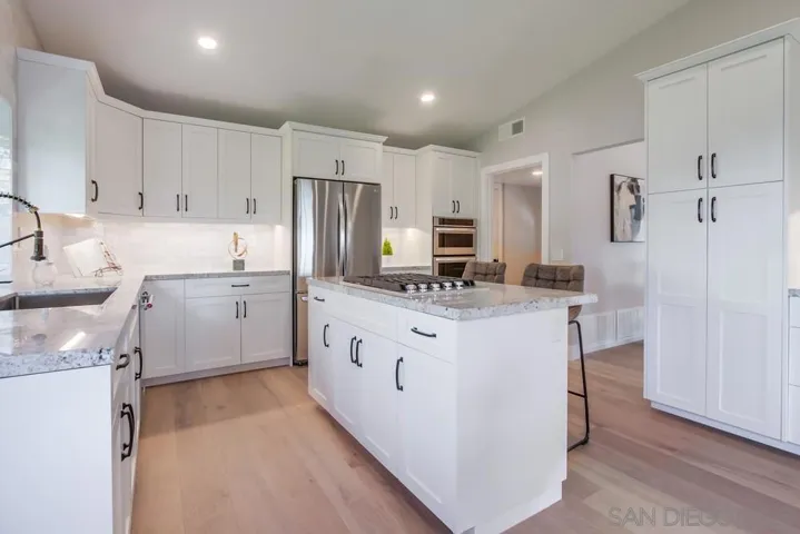 Welcome to your dream home in one of Carlsbad’s most sought-after neighborhoods! Nestled on a peaceful cul-de-sac, this stunning single-story, 4-bedroom retreat with three car garage offers the perfect blend of modern luxury and timeless comfort. Whether you’re a retiree seeking tranquility or a young family looking for space to grow, this home is designed to suit your lifestyle. Step inside and be greeted by an open-concept living room, dining area, and kitchen that exude warmth and sophistication. The seamless flow creates an inviting atmosphere, perfect for entertaining or simply enjoying everyday moments. Real engineered hardwood floors stretch throughout, complemented by designer tile and state-of-the-art appliances that elevate the heart of the home. With high-end finishes and a kitchen that’s as functional as it is beautiful, you’ll feel inspired being here. The primary suite offers vaulted ceilings and a giant walk in designer shower with high end bidet toilet, giving it a spa like feel. The expansive lot provides ample outdoor space, framed by breathtaking hillside and mountain views—a serene backdrop for morning coffee or evening relaxation. This move-in-ready gem is fully wired for an at-home security system, offering peace of mind for you and your loved ones. Just 5 minutes from essential amenities—grocery stores, gyms, restaurants, and shopping—you’re also just minutes from the iconic Carlsbad Village, renowned for its pristine beaches and vibrant coastal charm. This is more than a home; it’s a lifestyle waiting for you to embrace. Come see it today!