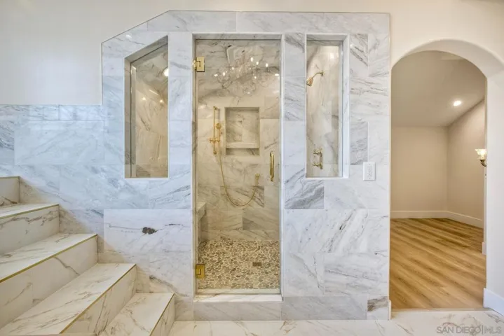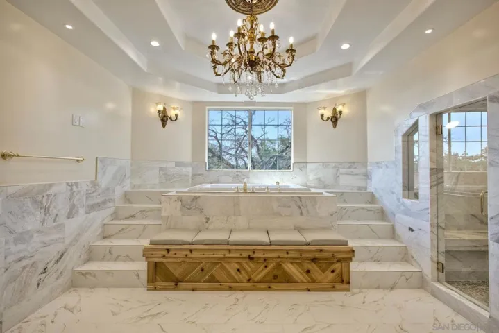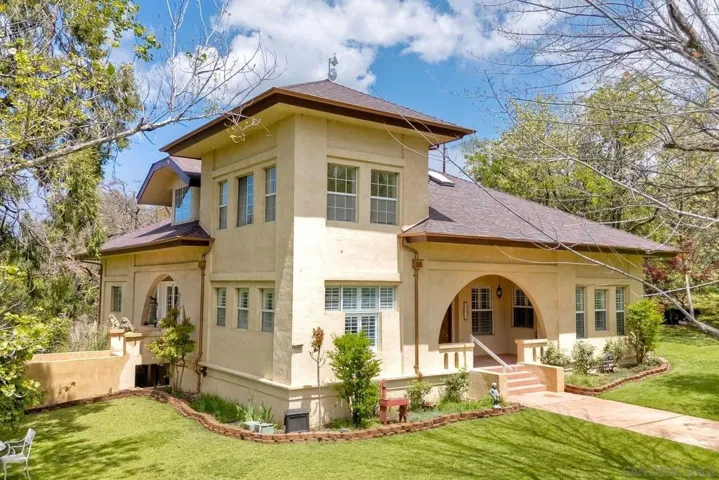 Experience the grandeur and comfort of the historic Mendenhall Estate, a fully restored legacy home with Gold Rush-era roots, nestled on 1.81 lush acres. Once owned by the renowned Mendenhall cattle ranching family, this home blends rich California history with modern luxury. The home has been fully-remodeled and restored to its former glory with all top-of-the-line finishes and offers 5,469 sq ft of living space, 5-bedrooms + office, 5-bathrooms. Poured concrete walls offer exceptional insulation and quiet while over 40 windows flood the home with natural light and beautiful mountain views. The main level features Brazilian travertine, 3-beds + office, 2-baths, a sunroom, 2 fireplaces and direct access outside to the pool and the yard reminiscent of an English garden. The kitchen is a chef’s dream with quartzite counters, Miele, Bosch, and Fisher Paykel appliances and a butler’s pantry. Enjoy a brand new permitted 1,752 sq ft top floor featuring 2-bedrooms + loft, 2-baths, new state-of-the-art HVAC, cedar ceilings, Italian marble vanities, custom coffered ceilings and a jetted tub with mountain views. Both the main level and the upstairs feature primary bedroom suites. The 605 sq ft walkout finished basement includes a full living space, full bath, laundry hookups and private entry. The home has owned solar with 55 owned panels (17.9KW) and a high-producing well with Palomar Mountain Spring Water. New septic, new 3d Corning 40 year roof and new custom copper seamless gutters with leaf guards and antique downspouts. A rare, luxurious blend of past and present awaits. Experience the grandeur and comfort of the historic Mendenhall Estate, a fully restored legacy home with Gold Rush-era roots, nestled on 1.81 lush acres. Once owned by the renowned Mendenhall cattle ranching family, this home blends rich California history with modern luxury. The home has been fully-remodeled and restored to its former glory with all top-of-the-line finishes and offers 5,469 sq ft of living space, 5-bedrooms + office, 5-bathrooms. Poured concrete walls offer exceptional insulation and quiet while over 40 windows flood the home with natural light and beautiful mountain views. The home has owned solar with 55 owned panels (17.9KW) and a high-producing well with Palomar Mountain Spring Water. New septic, new 3d Corning 40 year roof and new custom copper seamless gutters with leaf guards and antique downspouts. A rare, luxurious blend of past and present awaits. $300 per year for SDGE non-pass-through fees. Last year at true up a check for was received from SDGE for over production. The upstairs includes almost 1,000 sq. ft. of finished and conditioned storage space not included in the published square footage. The family history of this estate goes back to the 1800’s – the Mendenhall’s were a large Cattle Ranching Family and ran cattle from Palomar Mountain to Julian in the California Gold Rush Era. The bones of this home are poured concrete, with walls inside those built to CA state building requirements. The Mendenhall’s had two homes, one on Palomar Mountain, and this one dubbed “The Mendenhall Estate”. The well water is Palomar Mountain Spring Water. There are plans for a garage attached to the home with the roof dual purposed for a concrete patio – plans will convey with the sale. The entire home has crystal handled Schlage doorknobs and privacy locks adding an additional touch of elegance throughout. Throughout the home are luxury gold faucets and sconces and in the primary suite you will find Victorian perfume bottle gold faucets throughout the bathroom, shower, and statement piece spa tub. Above the vanities are custom gold framed Victorian style tri view medicine cabinets with tons of space. His and hers huge walk in closet space for you to bring your custom storage design. In his closet there are washer dryer hook ups and room for a folding table. The primary bedroom is huge and has an antique stained glass window from a c…