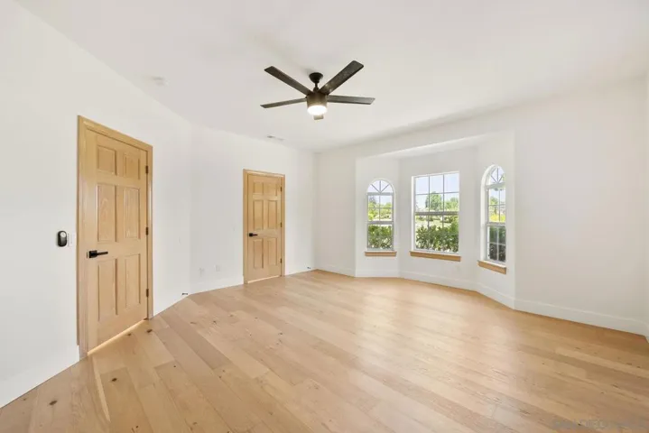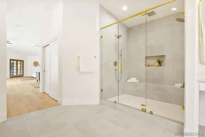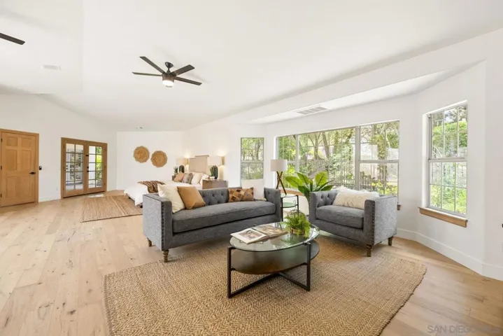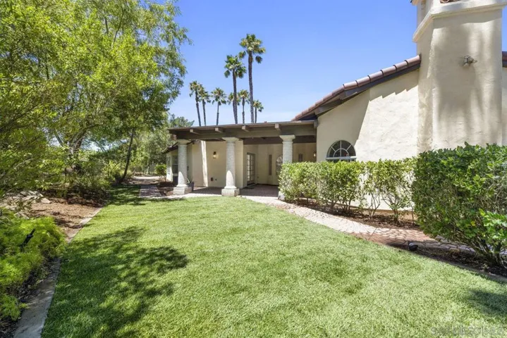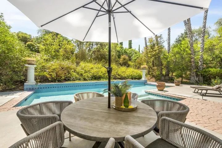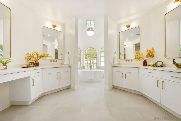 Stunning Renovated Single-Story Corner Lot Home with Designer Touches Throughout. This single-story home, ideally situated on a spacious corner lot. From the moment you step inside, you’ll be captivated by soaring wood-vaulted ceilings, an elegant updated chandelier, and wide-plank engineered hardwood flooring that flows seamlessly throughout. The grand entrance leads into a warm and inviting family room, perfectly positioned with direct access to your own private oasis—complete with a sparkling pool and relaxing jacuzzi. The expansive primary wing is a luxurious retreat, featuring an executive office, a tranquil atrium, and an impressive ~1,000 sq ft primary suite. The spa-inspired primary bathroom boasts dual-head showers, his-and-hers vanities, dual walk-in closets, and a freestanding tub beneath a stunning overhead light fixture and vaulted wood ceiling. The chef’s kitchen is a showstopper with custom soft-close slim shaker cabinetry, marbled quartz countertops, and a pearl tile backsplash extending to the ceiling. The adjoining wet bar is equally refined, creating a perfect space for entertaining. The north wing includes a second serene atrium and two well-appointed bedrooms connected by a luxurious Jack-and-Jill bath featuring a shared overhead shower and a freestanding soaking tub. A fourth bedroom includes its own private ensuite and matching custom cabinetry. Additional features include new paint, baseboards, dual AC, and a brand new roof! This turnkey property is the perfect blend of modern luxury and custom design