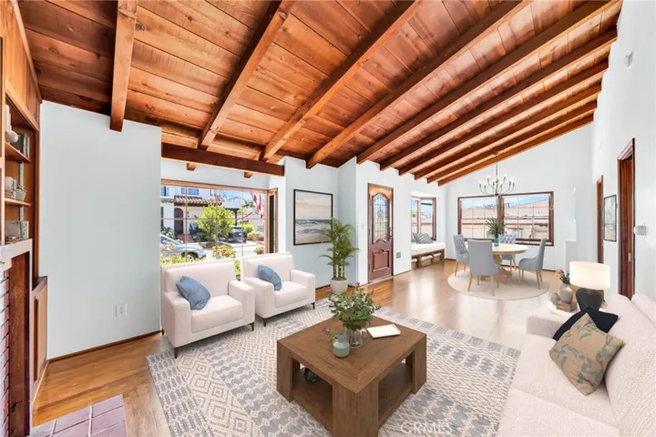 Don’t miss this exceptional opportunity to own a timeless piece of historic La Jolla, nestled in the prestigious and highly desirable Beach-Barber Tract — a coastal enclave where classic charm, walkable beachside living, and modern comforts converge. Just a few picturesque blocks from the shimmering Pacific Ocean, this single-level 1,107 sq. ft. gem captures the essence of Southern California living at its finest. Step inside and be welcomed by soaring vaulted open-beam wood ceilings and richly finished hardwood floors that radiate warmth and character. The inviting living room is anchored by a traditional brick fireplace and accented with built-in shelving—perfect for displaying treasured keepsakes or curating a relaxing reading nook. Bathed in natural light from a large bay window, the thoughtfully updated kitchen offers ample counter space, abundant cabinetry, and a cheerful atmosphere ideal for both everyday living and entertaining. The remodeled bathrooms feature elegant stand-alone showers and chic finishes that echo the relaxed, coastal aesthetic. Additional features include a convenient indoor laundry nook, a sun-drenched backyard deck perfect for al fresco dining or lounging, and a classic brick exterior that enhances the home’s enduring curb appeal. Set on a spacious lot, this home presents a rare opportunity to create a dream coastal sanctuary in one of La Jolla’s most beloved neighborhoods. Whether you’re seeking a serene primary residence, a stylish vacation home, or a savvy investment, this property offers endless potential in an unbeatable location—just minutes from pristine beaches, upscale boutiques, and world-class dining. Opportunities like this are few and far between in today’s super competitive La Jolla real estate market—act quickly to make this exceptional property your own.