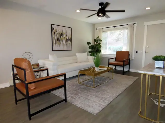 MOTIVATED SELLER! Condo is staged and ready to be sold! Gorgeous Condo in an Unbeatable Location! Located just steps from Mission Trails Regional Park and Kumeyaay Lake, this beautifully updated modern condo lives like a detached home—no upstairs neighbors and everything on one convenient level. Situated in a Planned Unit Development (PUD) community, this home offers comfort, style, and privacy. The kitchen features stainless steel appliances, elegant Volakas marble countertops with a satin finish, a new backsplash, recessed lighting, and an abundance of cabinet and pantry space. Enjoy seamless indoor-outdoor living with direct access to a spacious private patio—perfect for entertaining, relaxing, or gardening. Fresh paint and stylish vinyl plank flooring run throughout the home. See supplement! You’ll appreciate the open-concept layout with thoughtful designer upgrades, including custom built-ins, a charming barn door, and a trendy shiplap accent wall. A skylight in the bathroom fills the space with natural light, while a full-size washer and dryer are tucked conveniently into the hallway closet. Both bedrooms feature ceiling fans and AC window units for year-round comfort. The large enclosed patio includes an artificial grass area—ideal for pets! Just a one-minute stroll to the community pool. HOA covers water and trash, and the unit includes two assigned parking spaces. With quick access to the 52 and 125 freeways, this prime location makes commuting and exploring a breeze. Come experience the beauty and warmth of this welcoming community—you’ll love calling it home.