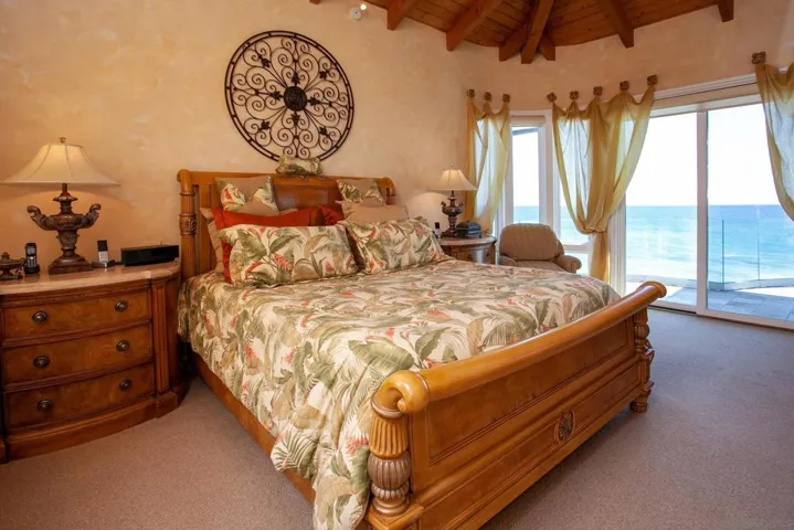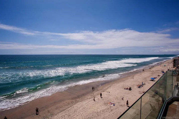 Premier Oceanfront Penthouse! Experience luxury living in this beachfront residence on Ocean Street, set directly on the sand in Carlsbad. Spanning the entire top floor of the south tower, the single-level layout boasts unobstructed white water views that deliver a coastal panorama as far as the eye can see. A private oceanfront balcony extends from both the main living area and the primary suite. Perfectly positioned in the heart of the Village, you’re just moments from charming boutiques, coastal dining, and the laid-back charm that defines this walkable seaside community. A spectacular opportunity to own a prime beachfront property in North County. In addition to the exceptional living spaces of this residence, the property further offers the added value of a separate and spacious beachfront “storage” (approx 200-250sf of addl space) that has been charmingly upgraded into a beach room complete with full ocean views. Located on the beach level and accessible via community elevator or courtyard staircase, this space allows the storage of all your beach essentials while providing direct access to the beach side common areas. Additional Features of Interest: Beachfront balcony (approx 45′) lined with glass wind walls the entire span | Professional interior design | Custom wood beamed vaulted ceilings with complimented paddle fans | Spacious bonus/family room with adjoining Ocean St balcony | Courtyard facing balcony with separate full bath complimenting the north guest suite | Stone gas fireplaces in the living room as well as the primary suite | Gourmet kitchen – Full Ocean View: Granite counters | Viking Professional range and hood Viking microwave | Viking dishwasher | Monogram compactor Sub Zero refrigerator | Wine storage | Stone flooring throughout core living area | Marble master counters | Laundry room – LG appliances | Tankless hot water | Air conditioning | Attached garage plus dedicated parking space within the gated parking structure | Community Features: Approx 110′ Frontage Lot | Substantial concrete storm wall – center staircase with direct gate access to beach | Private gated front courtyard common areas | Guest parking at Ocean St. | Common area elevator | Monitored fire sprinkler system