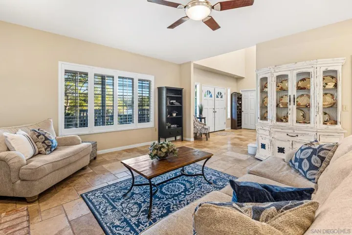 Experience unmatched privacy and mountain views in this 4 bedroom, 3 bath custom home now offered at a smart new price of $1.399M. Set at the end of a quiet cul-de-sac on 1.16 acres, this rare property is both a private sanctuary and an entertainer’s dream. Features include: *Spacious 3000sq ft with soaring ceilings and open layout *Resort style backyard with heated pool and lush, mature landscaping * Fully owned solar system +3 car garage=energy efficiency and savings *Chef’s kitchen with granite counters, large island and breakfast nook *Main floor bedroom & full bath perfect for guests, multi-generational living or home office *Fruit trees galore; peach, apricot, lemon, lime, grapefruit, orange, tangerine, avocado & plum *Private drive & panoramic views of mountains and greenery *Charming tiny home available for separate purchase This Vista paradise blends natural beauty with timeless style. This is a must-see property; schedule your tour today!