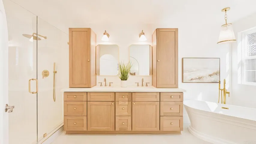 Welcome to 3951 Atascadero Drive, a beautifully reimagined Tudor residence in Point Loma offering 2,794 sq. ft. of timeless charm and modern comfort. Distinguished by its striking roof lines, this two-story home has been fully redone from top to bottom with thoughtful upgrades including all-new windows, HVAC, roof, engineered hardwood flooring, upgraded electrical, and upgraded plumbing. The inviting floor plan features four spacious bedrooms and three full bathrooms, including a downstairs primary suite with an oversized double shower that feels like a private retreat. The heart of the home is the entertainer’s kitchen, highlighted by warm wood ceilings, sleek finishes, and a seamless flow into the dining and living spaces. Natural light fills the home, creating an airy, open feel that enhances both everyday living and special gatherings. A charming oversized laundry room adds convenience while reflecting the home’s attention to detail. Upstairs, two additional bedrooms and a versatile loft/game room provide flexible living options for family, guests, or a home office. The upstairs deck is the perfect spot to unwind, offering refreshing coastal breezes and views toward the surrounding neighborhood and SeaWorld in the distance — where summer evenings are illuminated by seasonal fireworks. Equally impressive outdoors, the home features a stone façade and an entertainer’s backyard designed for gatherings. A large pergola with built-in bench seating and an outdoor fireplace creates the perfect setting for evenings with friends and family under the San Diego sky. Located in one of Point Loma’s most walkable and sought-after communities, this home combines historic charm with modern design. Stroll to neighborhood cafés, enjoy dining and entertainment at Liberty Station, or take in breathtaking sunsets at nearby Sunset Cliffs. Local beaches, downtown San Diego, and the airport are just minutes away, making this an ideal location for convenience and lifestyle. Families will also appreciate access to highly rated schools including Silver Gate Elementary, Dana Middle, and Point Loma High. From rich neighborhood history to upgraded interiors, a stunning backyard, and coastal living, 3951 Atascadero offers a rare blend of elegance, comfort, and location that truly has it all.