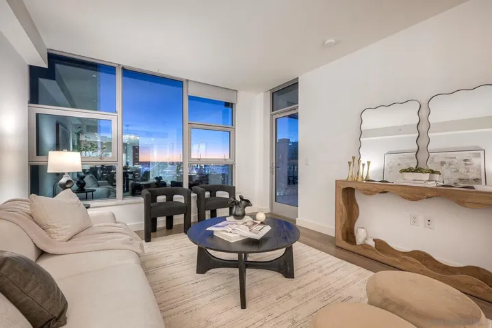 Welcome to Savina – Downtown’s premier luxury high-rise living next to Little Italy and the Bay! This stunning west-facing 2BR/2BA residence sits on the 6th floor, with sweeping bay and city views from every room. The open-concept kitchen features white quartz countertops, Thermador appliances, a spacious island, and ample storage, perfect for both everyday living and entertaining. The primary suite offers a generous walk-in closet, with a spacious 2nd bedroom with bay views. Enjoy sunsets and sparkling city lights from your private balcony. 1 Reserved Parking Spot + 1 Private Storage Room. Hardwood floors throughout kitchen and living room and brand new high end carpets in bedrooms. Residents of Savina enjoy resort-style amenities, including a pool & spa, state-of-the-art fitness center with yoga deck, steam & sauna rooms, a resident lounge, outdoor BBQs, pet retreat, conference room, and 24-hour concierge service.