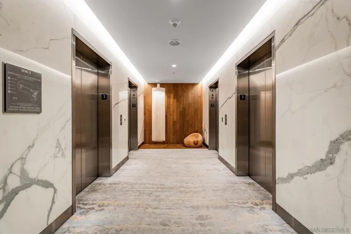 Experience luxury high-rise living at Pacific Gate on the iconic Downtown San Diego Waterfront district. Perched on the 22nd floor, this light-filled 2 bed, 2 bath, 1,390 square foot residence offers dazzling city lights and sparkling bay views—high enough to clear the Intercontinental Hotel while capturing the charm of the historic Santa Fe Depot. The open-concept layout is enhanced by custom upgrades, including a sleek modern entertainment center in the living room and a spacious walk-in closet in the primary suite. The desirable split-bedroom floor plan provides privacy, while expansive windows frame the stunning vistas. Enjoy San Diego’s mild climate from your private covered terrace, perfect for morning coffee or evening sunsets. Pacific Gate residents indulge in resort-style amenities such as a private yacht share, luxury car fleet, chef concierge, guest suite, resident’s lounge, a state-of-the-art fitness center with sauna and steam room, on-site celebrity chef restaurant, and much more! This is the perfect blend of luxury, comfort, and world-class convenience. The first all-glass Super Prime residential tower in San Diego offers an unprecedented waterfront lifestyle with sky-high amenities and picture-postcard views. Directly overlooking the waterfront, the 41-story tower contains an exclusive offering of homes designed by Hirsch Bedner Associates. Renowned New York-based architectural firm Kohn Pedersen Fox (KPF) created a landmark that reimaged the San Diego skyline. The custom-engineered glass walls dynamically reflect the hues of the sky and the Pacific Ocean. Pacific Gate has evolved the San Diego skyline and represents the future of the city. The building is comprised of two-nested curved glass towers that rise as a single column from a three-story ground floor retail podium on the north and west sides of the tower. Because of the building’s curves and exterior glass, Pacific Gate offers a striking viewing experience from every vantage point. Residents arrive home to a beautifully landscaped motor court with a private luxury car fleet, which leads to a double-height lobby with a 24-hour concierge and porter services. Two levels of amenities boast a residents lounge ideal for events and everyday use, the fitness center contains an extensive range of state-of-the-art equipment. Adjacent to the fitness center is the steam and sauna retreats that open up to the fourth-floor pool terrace fitted with poolside cabanas and glass surround.