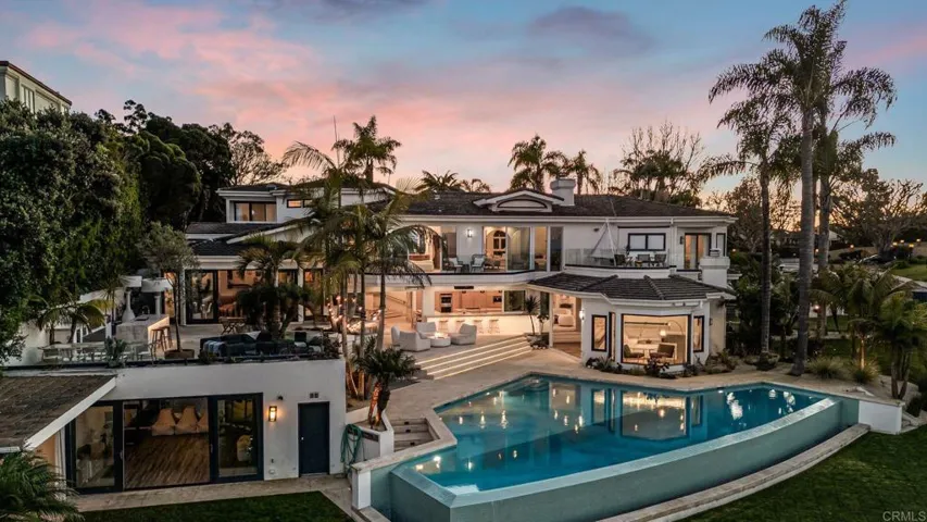 VIEWS. PRIVACY. SPACE. Panoramic Ocean Views ON TOP OF THE JEWEL! Mount Soledad estate with 180° panoramic ocean, mountain, and city views. Privately gated on almost an acre of land. 8,694 sq ft with recent $1M+ upgrades and prior 2005–2006 renovations by a prominent music executive. Features five ensuite bedrooms with balconies, two-story foyer, office, home theater, chef’s ocean-view kitchen with custom cabinetry and top-tier appliances, and newly reimagined primary suite with private balcony and magical coastal views. Outdoors: vanishing-edge pool, spa, fire pit, outdoor kitchen, large grass area, sprawling backyard, fruit trees, dry pond, sport court potential, and Tesla EV charger.