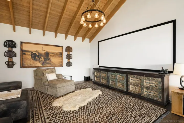 Nestled in the rugged backcountry of East San Diego County, Red Cloud Ranch is a rare sanctuary where modern luxury meets natural beauty. Spanning approx. 388 acres of rolling fields, vibrant oat hay, and serene landscapes, the property feels worlds away—yet is less than an hour from the coast. The property shimmers under the mountain sun, setting the stage for a life of privacy, recreation, and timeless California living. Completed in 2018 by master builder Greg Agee and architect John Jensen, the main residence is a showcase of design and craftsmanship. At approx. 5,023 sq. ft., soaring 20-foot ceilings, six bedrooms, five bathrooms, a media room, custom lighting and storage, and a three-car garage, the home captures sweeping views of the Santa Ysabel Mountains. Light-filled interiors blend seamlessly with the outdoors, while a resort-style pool and spa, spanning 55 feet, solar-heated with an automatic cover, invites year-round relaxation. Multiple fireplaces and firepits create the perfect backdrop for gatherings large and small. Beyond the residence, the property transforms into an extraordinary retreat for recreation and entertaining. A full-size pickleball court, cowboy croquet, organic garden, and chicken coop bring both playfulness and practicality. The one-of-a-kind “Miner’s Village” along the creek—complete with stage—offers a magical setting for live music, performances, or private celebrations. Guests can fish or kayak at Blackberry Pond, which is approximately .5 acres at a 20 foot depth at its fullest, or head to the shooting range, outfitted with multiple.. benches for both training and sport. At the social core of the ranch, the approximately 2,000 sq. ft. Party Barn sets the scene for weddings, concerts, or spirited gatherings. With soaring ceilings, dramatic chandeliers, and dedicated restrooms, it is equally suited to elegant occasions or rustic celebrations. A separate 1,200 sq. ft. manager’s residence with three bedrooms and two bathrooms provides flexible accommodations for staff, family, or guests, while an RV/storage structure adds further utility. For equestrian and agricultural pursuits, the estate offers a four-stall horse barn, hay barn, and thriving orchard, boasting peaches, nectarines, plums and apricots. Five active wells producing 5-60 gallons/min, 55,000 gallons of water storage, and on-site gas, diesel, propane storage, 1,500 sq. ft. workshop and 3,000 sq.ft. equipment storage, ensure operational independence across hundreds of acres. Red Cloud Ranch is as self-sufficient as it is versatile, with infrastructure supporting everything from recreation and farming to hospitality and conservation. Located just minutes from the historic mountain town of Julian, the ranch offers the perfect balance of seclusion and connection. Whether envisioned as a private family retreat, a luxury event venue, or a generational legacy, Red Cloud Ranch is more than a property—it is an experience, a lifestyle, and a place to write your story.