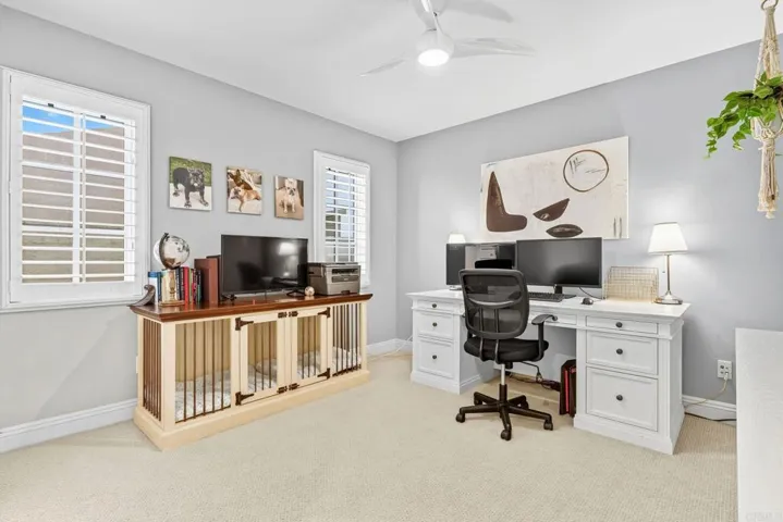 Welcome to this stunning Crosby Villa – where timeless design, effortless comfort, and the best of Southern California living come together. Offering over 3,600 sq. ft. of beautifully designed space, this 4-bedroom, 4.5-bath home features an open, light-filled layout with soaring ceilings and elegant finishes throughout. The main-level bedroom with a full bath provides ideal flexibility for guests, multigenerational living, or a private office. Upstairs, the primary suite feels like a true retreat with its spa-inspired bath and spacious walk-in closet. Each additional bedroom offers an en-suite bath, giving everyone their own private space – perfect for family or visitors. Step outside and experience the lifestyle The Crosby is known for. The custom covered pergola creates the ideal setting for outdoor dining and entertaining, while the grassy lawn and tranquil patio with a charming fountain offer the perfect balance for relaxation and play. It’s an outdoor space designed for everyday enjoyment. Located on a quiet cul-de-sac, this home offers privacy yet is just a short walk to The Crosby’s Sports Center and Clubhouse – making golf, fitness, tennis, swimming, and social events an effortless part of daily life. With a whole-house water filtration system, pristine condition, and an exceptional location within one of Rancho Santa Fe’s most prestigious 24/7 guard-gated communities, this Villa offers a lifestyle that is both luxurious and inviting. Additional highlights include access to The Crosby’s world-class 18-hole golf club, with a complete sports center and gourmet dining options (membership required). The Crosby is within the desirable Solana Beach Elementary and San Dieguito High School Districts. HOA: $760 + $275 =$1,035 gross per month.