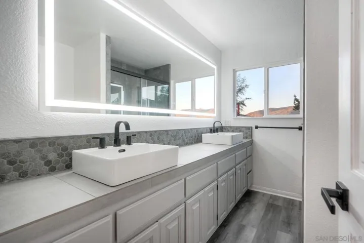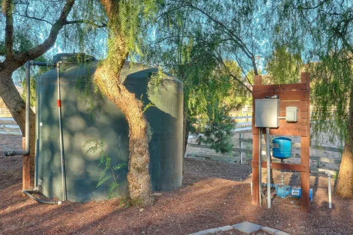 Discover this beautifully remodeled ranch-style retreat that sits on over 4 acres with direct access to thousands of acres of Cleveland National Forest, offering privacy, breathtaking views, and endless trails for hiking or horseback riding, including one to a nearby waterfall. The property features a 36 ft x 24 ft heated and insulated steel building with 100-amp service. The home blends modern luxury with self-sufficient living, featuring 100% waterproof luxury vinyl and stone tile flooring, a brick fireplace, and updated kitchen with stainless steel appliances. Both bathrooms have been fully renovated, new windows throughout, new roof and new exterior paint ensure energy efficiency and long-lasting quality. The property is connected to the grid and the owned 36-panel solar system currently generates 160% of the home’s electricity, backed by an automatically switched 27 kW whole-house generator connected to a 500-gallon propane tank. New well pump and a 5,000-gallon holding tank. Outside, enjoy multiple patios, a 35-tree fruit orchard on drip with varieties, mature shade trees, Jacuzzi, infrared sauna, 240 sq ft chicken coop, RV hook-ups, and a fire safety system with hydrant, pump, 7,000 gallon storage tank and clear defensible space. Bonus features include the 36 x 24 steel building, a John Deere tractor, Yamaha Rhino 450, 5 cords of firewood, gun safe, huge fenced area for dogs and the property backs up to Cleveland National Forest. With 400 amps of power and plenty of room to expand, this property offers unmatched freedom and functionality. Assumable loan at 2.375%.