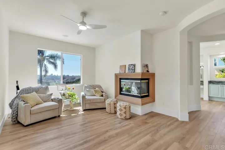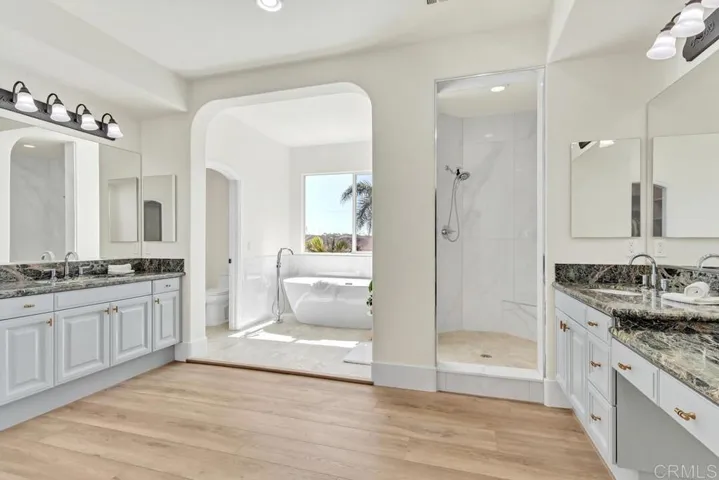 This Carmel Valley property is more than a home. It is a retreat with a complete interior refresh, a resort-style backyard, and one of the community’s largest canyon-rim lots. Backing directly to Los Peñasquitos Canyon Preserve, the residence offers nearly 4,000 square feet of updated living space on a rare 12,910 square foot lot with privacy, scale, and views that stretch to the horizon. Step inside and natural light fills the open layout. Every surface has been touched. Fresh paint, new baseboards, Cali Longboard luxury vinyl plank flooring, and beautifully refinished cabinetry and woodwork bring a polished, cohesive feel throughout. Updated fixtures and lighting add modern style, while formal living and dining areas flow seamlessly into a spacious kitchen and family room overlooking the canyon. The refreshed kitchen features refinished cabinetry, new hardware, updated fixtures, and elegant lighting, designed for both everyday living and entertaining. Secondary bathrooms throughout the home have been tastefully updated with quartz countertops, modern fixtures, and refined finishes that create a cohesive style. The primary suite, however, is in a class of its own. With a generous retreat space, oversized walk-in closet, and sweeping canyon views, it is a true sanctuary. The spa-inspired bathroom showcases a brand-new walk-in shower, a freestanding soaking tub with a dramatic floor-mounted faucet, and timeless tile and stone accents that elevate the space into something extraordinary. The home also features a rare luxury suite on the main level. Complete with its own living room, full bath, and private exterior entrance, it offers a distinct sense of comfort and privacy within the residence. Upstairs, three additional bedrooms provide space and flexibility, each enhanced by fresh finishes and abundant natural light. Outdoors, the resort-style backyard takes center stage. A custom pool with rock waterfall, water slide, and elevated spa sits amid mature landscaping, framed by uninterrupted preserve views. With no rear neighbors and plenty of space to relax or entertain, the setting feels like a private resort at home. All of this comes with the convenience of a prime Carmel Valley location. Award-winning schools in the Del Mar Union and San Dieguito Union High School Districts are nearby, along with shopping and dining at One Paseo and Del Mar Highlands. The location offers easy access to the I5 and the 56, and the beaches, hiking trails, and Torrey Pines Reserve are just a short drive away. With its canyon-rim setting, resort-style backyard, and complete interior refresh, this Torrey Hills property represents one of the most compelling opportunities on the market today.