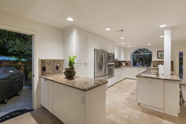 Welcome to a truly one-of-a-kind residence in the highly sought-after neighborhood of Rancho La Costa. Perched in the hills above the renowned Omni La Costa Resort & Spa, this tranquil oasis has been lovingly maintained and upgraded by one owner—and is now offered for the very first time. Set on a prime, level corner lot within a peaceful cul-de-sac, this home offers exceptional privacy, refreshing ocean breezes, and effortless access to top-rated schools, beaches, shopping, and the Alga Norte Park & Swim Complex. Step through the custom stone and wood entry blending artistry and architectural charm into an inviting design with vaulted ceilings, crown molding, skylights, and tumbled travertine flooring that exude warmth and timeless elegance. The airy great room flows seamlessly into a culinary-inspired kitchen featuring a grand island with sink, walk-in pantry, custom cabinetry with pull-outs, and generous prep space—ideal for gatherings and everyday living. Upstairs, the primary suite is a serene retreat with a private deck showcasing ocean and golf course views, an oversized dual-head shower, walk-in closet, and refined finishes. Two of the spacious secondary bedrooms, also with walk-in closets, share a stylish Jack-and-Jill bath. Exterior highlights include stone paver entry and driveway, multiple patios, lush landscaping, custom lighting, fountain feature, and two producing avocado trees. A showcase of craftsmanship, comfort, and coastal sophistication—this Rancho La Costa gem is available now for the first time. Rancho La Costa in Carlsbad blends upscale suburban comfort with Southern California’s outdoor lifestyle. Tree-lined streets, large lots, and architecturally varied homes—many with golf course or nature preserve views—give the area a sense of spacious luxury. The neighborhood has excellent schools nearby, parks, trails, and easy access to shopping centers and amenities like the Omni La Costa Resort & Spa. Outdoor enthusiasts appreciate the Rancho La Costa Preserve, the Switchback and Ridgeline Trails and other open-space areas for hiking and scenic views of the ocean and lagoon. While the vibe is relaxed, privacy is a feature with quiet streets and relatively little hustle compared to coastal San Diego, while still being just a short drive from beaches and the coast.