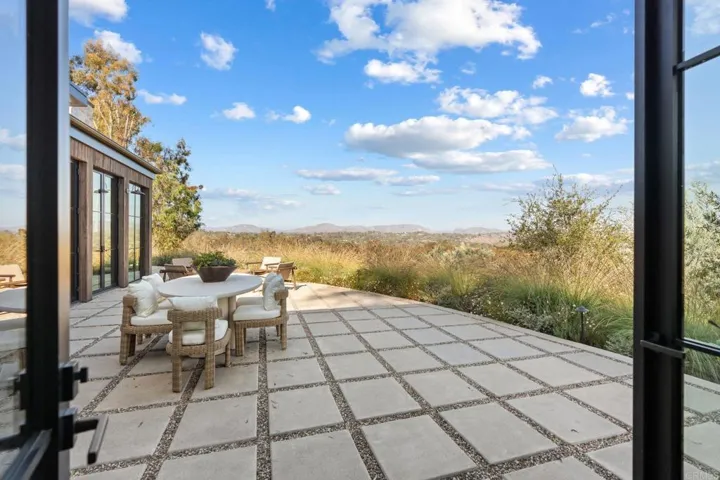 A New Construction Masterpiece Above the Clouds in the West Side Covenant of Rancho Santa Fe. Perched upon a desirable hilltop in Rancho Santa Fe, this spectacular new construction ranch estate with a modern twist was completed in 2025 and offers a top-of-the-world location, granting rare sweeping views from East to West that allow you to live in serenity among the treetops. It is a private sanctuary, a genuine West Side Covenant home, that flawlessly merges timeless craftsmanship with contemporary luxury. The 4,359 SF, single-level residence is set on 1.54 meticulously maintained acres. It delivers 4 bedrooms, 3.5 spa-inspired bathrooms, a dedicated office, and a media room, all unified by an effortless, transparent indoor-outdoor flow. The architecture masterfully blends warm natural stone, rich wood accents, and expansive walls of glass that act as art, flooding the interiors with curated light. Inside, vaulted ceilings with exposed beams soar above the open living and dining spaces. The chef’s kitchen, a study in functional elegance, pairs bespoke custom cabinetry with high-performance stone surfaces, a commanding center island, and professional-grade appliances. Thoughtful design details, including wide-plank oak flooring and meticulously curated lighting, ensure every corner of the home feels both refined and utterly comfortable. The private primary suite is a true retreat, opening directly onto the patio with restorative views across the rolling hills. Outside, the property is framed by multiple entertaining terraces and lounging areas, complete with an outdoor fireplace, the perfect settings for taking in the daily, vibrant sunsets. Beyond the main residence, amenities include an 827 SF 3-car garage and meticulously landscaped grounds designed for low-maintenance beauty. This newly built estate offers a rare combination of contemporary design, single-level ease, and an unmatched location that is just minutes from the beach, the iconic Racetrack, polo fields, world-class golf, top-rated schools, and the charming Village of Rancho Santa Fe.