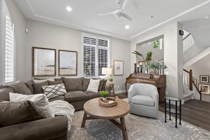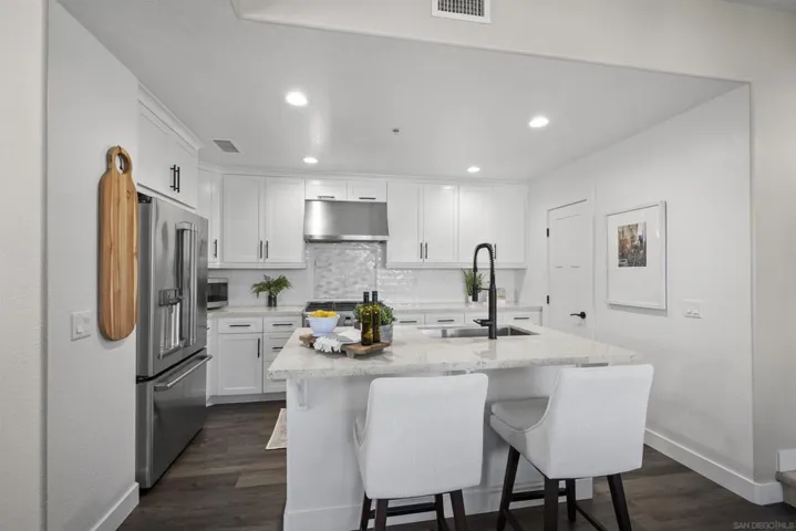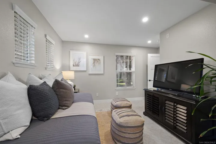 Luxury living in this rarely available, turn-key 3 bedroom3.5 bath end unit townhome in the heart of Liberty Station. This spacious home has been beautifully upgraded with vinyl wood plank flooring, Berber carpeting and shutters throughout. Gourmet Kitchen with Caesar stone Lyra countertops, custom kitchen cabinets, tiled backsplash, and GE Café series appliance package including Café refrigerator and 6-burner stove. Baths have newer cabinets, counter tops, mirrors and fixtures. Added bonus is the Halo home water purification system installed in 2024. Surrounded by trees, this home offers the utmost in privacy and green views. It’s just a short walk to restaurants, cafes, shopping including Trader Joe’s, the famed Liberty Public Market, movie theater, NTC Park spanning 46 acres on the waterfront, sporting club and the newly opened Cygnet theater. Minutes to downtown, airport, entertainment and all that San Diego has to offer.