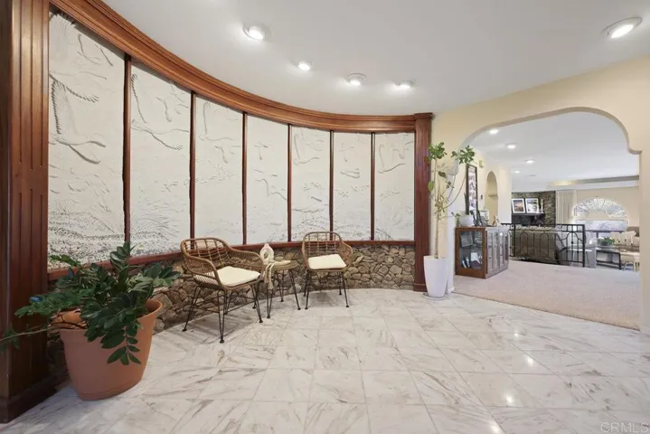 4 bedrooms, 4 bathrooms, 2 family rooms, 2 dining rooms, hidden wine cellar, Putting Green out back, waterfall entry, sand cast art wall from renowned San Diego Artist and Architectural engineer of the San Diego Zoo Charles Faust, 3 car garage, solar w/ 3 Tesla batteries and EV hookups, elevator/lift for those who wish to skip the stairs, and breathtaking views from every window in the entire home. Situated atop the Prestigious San Diego Country Estates, this custom built 3,859 sqft home is one of a kind. Drive your golfcart to your tee time or watch the golfers from the panoramic views in your backyard. Rear of the property situated Easte to capture every morning sunrise, and unobstructed sunshine for gardening or sun bathing. Full privacy at the top of the mountain with no neighbors encroaching your privacy or views. The property is just over half an acre (.53) at 23,086 sqft with lots of driveway parking. MAJOR VIEWS in this Master Plan Community.
