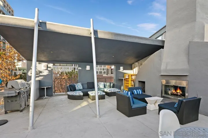 1 BR Gorgeous penthouse right in the center of Marina District. This unit was a former model and has probably best location in the complex – desired upper (4th) level, very private corner unit with only one common wall. Former model with Stainless steel countertops, appliances, custom lighting, high volume ceiling. Nice kitchen cabinets with glass inserts. Private balcony. Washer/Dryer, central A/C, ceiling fan, custom blinds, built-ins in the walk-in closet, etc. All furniture will stay and be included in the sales price. Premium corner parking spot #177 in the underground garage with easy access in & out and close to the elevator. Just steps to Seaport Village, convention center, Gaslamp district, best restaurants & entertainment. Please read Confidential Remarks.