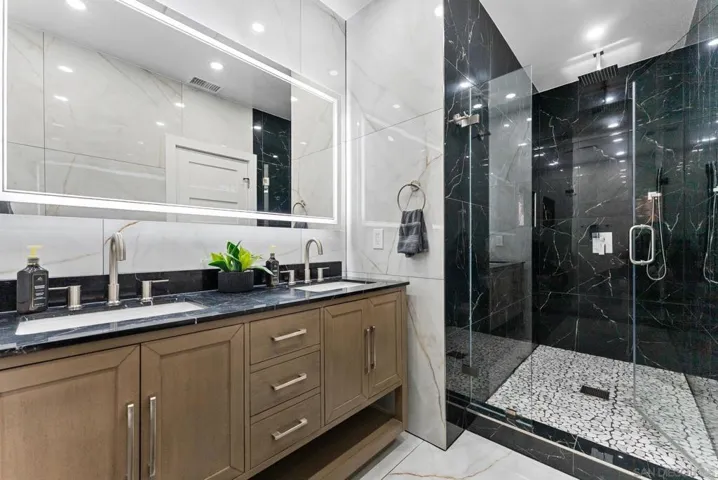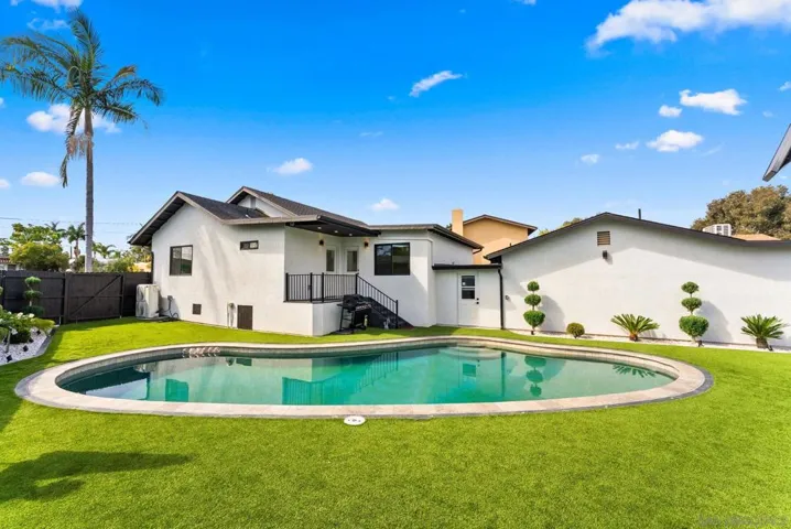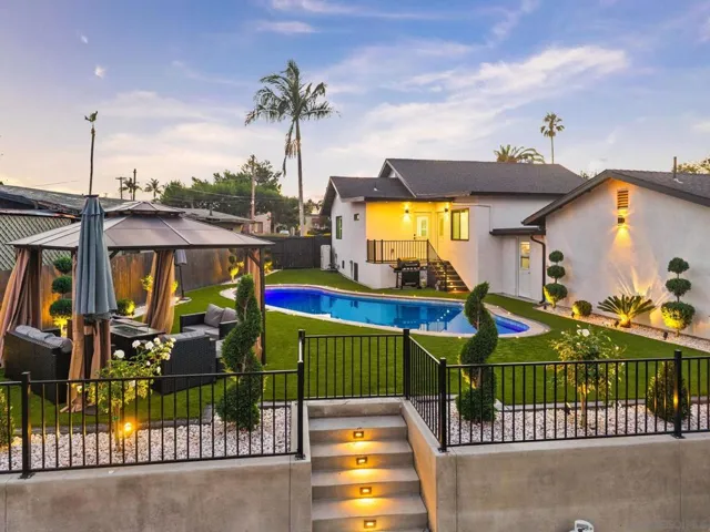 Welcome to 4961 E Mountain View Dr, an exquisitely remodeled home in the heart of Normal Heights! Completed in 2024, this 4BD/3BA single-level gem offers modern luxury. Enjoy elegant porcelain tile flooring, designer lighting, and an open-concept layout that flows seamlessly from the chef’s kitchen—featuring a large island and premium appliances—to the inviting living area and private backyard with a luxurious pool and gazebo, perfect for entertaining. The spacious primary suite includes dual sinks, a walk-in closet, and a stunning spa-like bath. At night, the home comes alive- it’s warm exterior lighting highlights every detail, creating a stunning, inviting glow that captures true curb appeal. Additional highlights include a shared driveway, ample parking, central forced air, and fresh landscaping. Situated on a 19,235 sq.ft. lot near parks, shops, and dining—this home blends style, comfort, and location in one of San Diego’s most vibrant neighborhoods!