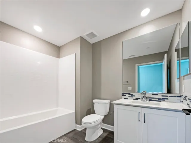 The chef-inspired kitchen is a showstopper—complete with a sleek tile backsplash, stainless steel appliances, and a spacious island perfect for entertaining or meal prep.