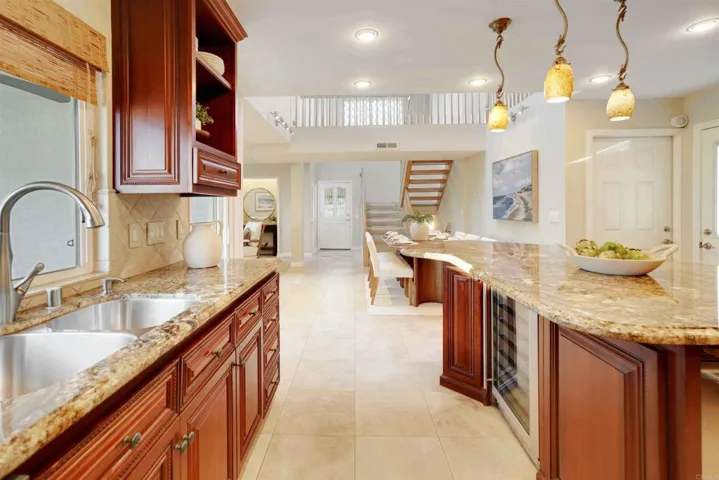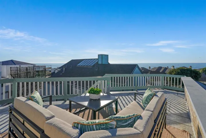 Sunset Alert! Rare opportunity to live steps from the sand with direct beach access and breathtaking ocean views. Seller completed a major remodel in 2005 on this luxury coastal home which offers multiple outdoor entertaining areas, a rooftop deck for unforgettable sunsets, and a spa with waterfall. Inside, enjoy a light-filled open layout with expansive windows, gourmet kitchen, granite counters, and wine cooler. The primary suite features a balcony, fireplace, and spa-style jacuzzi bath. Two guest suites, a custom cherry-wood office, private driveway, and large two-car garage complete this exceptional beachside retreat. Walk to Carlsbad Village shops, cafés, and restaurants. Explore the feasibility of one of the largest lots on Ocean St with R3 zoning.