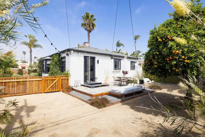 RARE gem in Oceanside’s historic Seaside neighborhood, famed for its white concrete streets & vintage charm. Perched on a PRIME OCEAN-VIEW street west of the 5, this classic California beach bungalow offers perfect walkability, an indescribably serene atmosphere designed for wellness and relaxation. Westerly OCEAN breezes keep fresh air circulating through this natural haven, updated with modern Non-toxic upgrades. Window-lined walls bathe every space in natural light. Preserved charm includes restored original hardwood floors, vintage molding, architectural details, and a gorgeous wood-burning fireplace for cozy evenings. The modern kitchen features ample storage, an adjacent dining area which opens up to a deck making this an ideal space for culinary and entertaining enthusiasts. Bathrooms are tastefully updated. Separate in house laundry area includes additional storage. Main house feature an updated ac/ central heat and ducts The clean, ZEN-Mediterranean landscape features fruiting olive & orange trees, an organic medicinal herb and vegetable garden. The designer-fenced front yard offers a serene space to enjoy sunsets. The separate backyard and grounding deck add a natural oasis. A stunning, permitted ADU ( generates an average of $2600 per month when rented) with private entrance, kitchen, bath, dining area and in unit laundry adds many options including rental income, multi-gen living, office, or a guest house. As an additional upgrade, ADU features a mini split system for indoor temperature control. Possibilities for a roof deck for breathtaking ocean and sunset views. Walk to the beach, award-winning restaurants, downtown Oceanside, and the iconic pier. With quick access to train, freeways and airports, this home offers an ultimate coastal lifestyle.