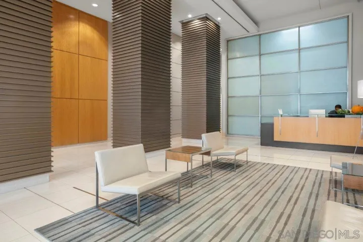 Welcome to your perfect perch in the sky! This highly sought-after southwest corner residence at Alta delivers awesome panoramic views of the San Diego Bay, Point Loma, and the glittering Downtown skyline. With freshly refinished wood floors, the open floor plan is framed by expansive windows offering natural light, a sleek kitchen with stainless appliances, modern cabinetry with frosted glass accents plus a one-of-a kind custom built-in buffet featuring cabinets, drawers; all with quartz counters. Both bedrooms include beautiful views, ceiling fans, and organized closets with frosted glass doors. The bathrooms feature marble countertops and slate tile flooring for a clean, modern finish. Additional features include an in-unit washer/dryer, powder room, storage cage, and a secured parking space, everything you need for effortless urban living. Alta is a building as unique as you are with distinctive architecture by Perkins and Company. Perfect for the active Downtown dweller, residents can take advantage of a 50’ indoor/outdoor pool, spa, large fitness center, and a luxe communal club room with home theater and pool table. Additionally, Alta prides itself on featuring energy efficient appliances and mechanical systems for lower utility costs. Top-notch amenities, fabulous design, and professional, on-site community management combine for one of the best HOA values in all of Downtown San Diego! Situated in East Village on the edge of the city’s historic Gaslamp Quarter, enjoy a premium location only steps away from Petco Park and convenient access to endless shopping, dining options, and night life.