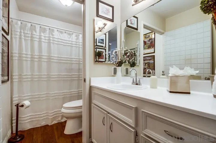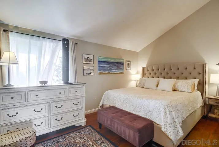 Stunning top floor unit nestled in University City! This gorgeous 1br/1ba unit features a GOURMET kitchen w/newer cabinets, quartz counters & stainless steel appliances. Vaulted ceilings, luxury vinyl floors, updated bath, 1 garage space & permit pkg spot. When you step in the door you will be impressed! The large balcony overlooks trees & greenery. This centrally located beauty is close to the beach, freeways, shopping, public library & food. The complex is well maintained & has a sparkling pool. Why on earth would you rent, when you could call this home?!!