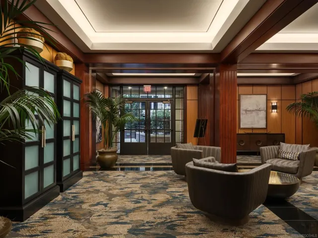 Discover elevated urban living at CityFront Terrace from this 2 BR, 2 BA residence in downtown San Diego’s sought-after Marina District. This beautifully updated residence offers peek bay views of the Coronado Bridge, and the city skyline, with a spacious balcony overlooking the community’s lush Urban Canyon gardens. Inside, the open layout blends style and function with a modernized kitchen featuring quartz countertops, stainless appliances, designer backsplash, and custom lighting. The primary suite offers a calm retreat with mirrored closet and a remodeled bath with deep jetted bath & dual quartz vanity. A versatile second bedroom includes a built-in Murphy bed and desk system, ideal for guests or a home office. Home comes with one large parking spot. CityFront Terrace is legendary in downtown San Diego for its high-end service and amenities with valet parking, 24 hour security/door service, 3,500 sq ft fitness center, two heated pools, clubroom, concierge services, and more! With the waterfront, Seaport Village, the Rady Shell, Little Italy, and the new Research and Development Districts just outside your door, this is downtown living at its best. Discover elevated urban living at CityFront Terrace from this 2 BR, 2 BA residence in downtown San Diego’s sought-after Marina District. This beautifully updated residence offers peek bay views of the Coronado Bridge, and the city skyline, with a spacious balcony overlooking the community’s lush Urban Canyon gardens. Inside, the open layout blends style and function with a modernized kitchen featuring quartz countertops, stainless appliances, designer backsplash, and custom lighting. The primary suite offers a calm retreat with mirrored closet and a remodeled bath with deep jetted bath & dual quartz vanity. A versatile second bedroom includes a built-in Murphy bed and desk system, ideal for guests or a home office. Home comes with one large parking spot. CityFront Terrace is legendary in downtown San Diego for its high-end service and amenities with valet parking, 24 hour security/door service, 3,500 sq ft fitness center, two heated pools, clubroom, concierge services, and more! With the waterfront, Seaport Village, the Rady Shell, Little Italy, and the new Research and Development Districts just outside your door, this is downtown living at its best.
