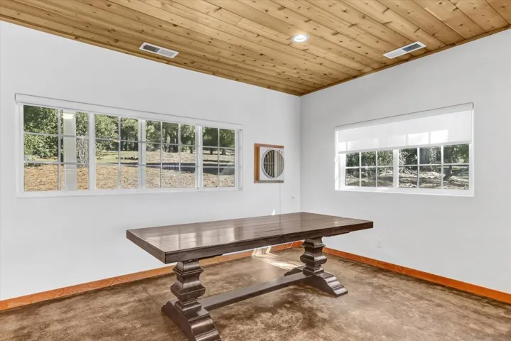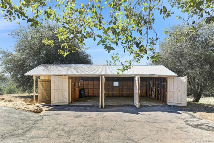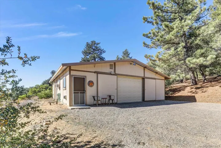 Escape to your personal sanctuary at 3258 Pine Hills Road, Julian, CA—a chic, modern ranch-style home that blends comfort and nature. Located in the coveted Pine Hills neighborhood, this property offers both the convenience of nearby town life and the tranquility of seclusion. With 1,342 sq. ft. of elegant living space, this two-bedroom, two-bathroom gem is set on a sprawling 51.75-acre estate. Inside, enjoy the sophistication of concrete floors and abundant natural light from dual-pane windows and recessed lighting. The open kitchen, complete with a gas stove, oven, dishwasher, and refrigerator, is perfect for culinary adventures and entertaining. The living room features a cozy potbelly stove for relaxing evenings. The primary bedroom offers a walk-in closet and an ensuite bathroom with a charming clawfoot tub for a spa-like experience. Outside, the property features a private fenced patio, stunning views, and a welcoming screened porch. An attached climate-controlled garage with custom cabinetry, a washer/dryer, and a tankless water heater is ideal for hobbies and vehicle care. Beyond the main house, a charming guesthouse awaits, complete with a kitchenette, bathroom, bedroom, office, and stalls for horses or other animals. The estate also includes a versatile greenhouse, garden beds, thoughtful irrigation, and a practical tractor shed for outdoor pursuits. Whether you seek a tranquil retreat or a luxurious second home, this Julian oasis awaits you.
