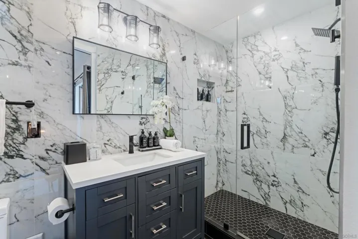 Reimagined in 2025, this striking residence stands as the most coveted home within Jonathan Segal, FAIA’s iconic Kettner Row. One of only 17 fully detached architectural row homes, each a statement of modern design with no shared walls, no HOA, and no short term rental restrictions, it offers a rare blend of architectural pedigree, refined luxury, and urban independence. Soaring 20-foot ceilings and expansive windows flood the interiors with natural light, while dual primary suites, including a private ground level suite with its own entry, provide ideal flexibility for guests or rental income. The 2025 designer remodel introduced a chef’s kitchen featuring Sub-Zero paneled refrigeration, dual freezer drawers, a wine cooler, dual refrigerated beverage drawers, Viking convection oven and range with griddle and hood, warming drawer, and Fisher & Paykel double-drawer dishwasher, complemented by handcrafted William Ohs cabinetry, imported soapstone countertops, African Walnut solid plank wood, and 24” Italian black porcelain flooring. Thoughtfully enhanced with brand new HVAC, a new mini split, tankless water heater, and dual laundry rooms, this home combines luxury with modern efficiency. Spa-inspired bathrooms, a wood-accented patio, full-length electronic sheer curtains, and a five-zone Bose sound system elevate the experience. Located within the award-winning Little Italy Neighborhood Developers (LIND) block, recipient of the 2021 AIA San Diego Legacy Award, the home sits in the heart of one of San Diego’s most vibrant and walkable neighborhoods, offering unmatched access to the downtown waterfront, world-class dining, cafés, galleries, and boutiques. With one of the highest walkability scores in the city and a proven record as a high-income producing investment property, this residence delivers the ultimate blend of design, livability, and financial performance.