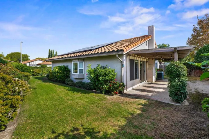 Welcome to this 3-bedroom, 2-bathroom single-level home in the highly desirable Murray Mission community. Offering a spacious ranch-style layout, this property features vaulted ceilings, recessed lighting, air conditioning, solar, and a cozy fireplace that creates a warm and inviting atmosphere. Wood plank flooring flows throughout the main living areas, complemented by a stylish shiplap accent wall for added charm and character. Enjoy expansive outdoor living with a large, lushly landscaped front, back, and side yard—perfect for entertaining, gardening, or simply relaxing in your own private retreat. A convenient 2-car garage provides ample storage and parking. Residents of Murray Mission enjoy fantastic community amenities including a sparkling pool and spa, beautifully maintained greenbelts, walking trails, and front yard landscaping services. The location is unbeatable—walking distance to the neighborhood park, local schools, shops, and restaurants, with quick access to major freeways and just minutes to the beach. This is North County living at its best—single-level comfort, modern upgrades, a vibrant community, and an ideal Oceanside location.
