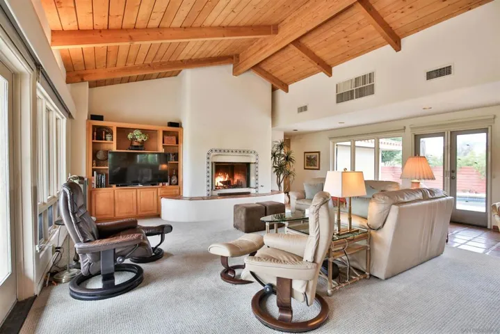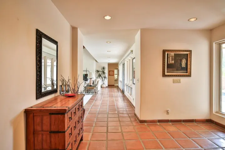 Beautiful Spanish style home on the De Anza golf course with awesome views of the golf couse and mountains! This home has a circular driveway with extra carports, leading into the private front courtyard and sparkling pool. Inside features an open floor plan with high open beam ceilings and lots of glass front and back to take advantage of the views. Large well appointed kitchen with newer appliances. Also has a guest bedroom that can be closed off for privacy. Includes paid solar panels.