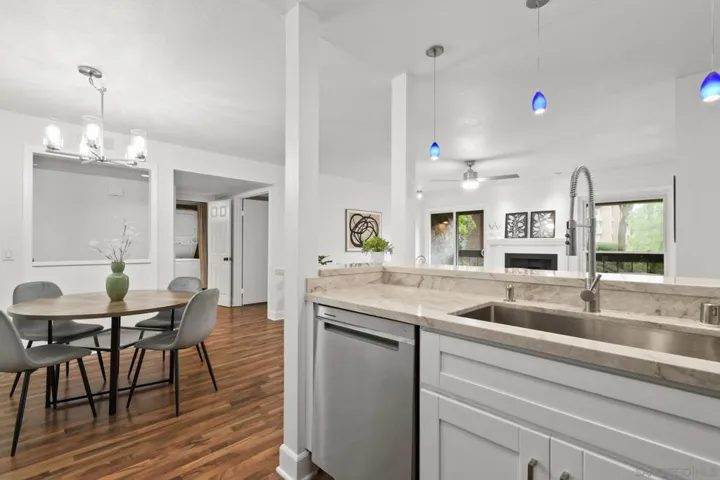 Back on Market due to no fault of the unit! Welcome to your beautifully remodeled home in the heart of Mission Valley! This turnkey 2-bedroom 2-bathroom condo features a brand new kitchen with shaker cabinets and high-end luxurious Taj Mahal Quartzite counter-tops with raised bar. Refreshed bathrooms and thoughtful upgrades throughout, including wood laminate flooring throughout! Enjoy a light & bright, open layout with a private balcony perfect for relaxing. Located in the desirable Mission Ridge community offering a pool, spa, fitness center, tennis courts, and clubhouse. Centrally located near shopping, dining, Snapdragon Stadium, and easy freeway access. Move-in ready and the perfect blend of comfort and convenience! Unit comes with 2 resident parking passes, including 1 car port with tons of additional storage! HOA fee includes hot water, trash and maintenance. HOA rules limit dogs weight to 30 lbs unless E.S.A.