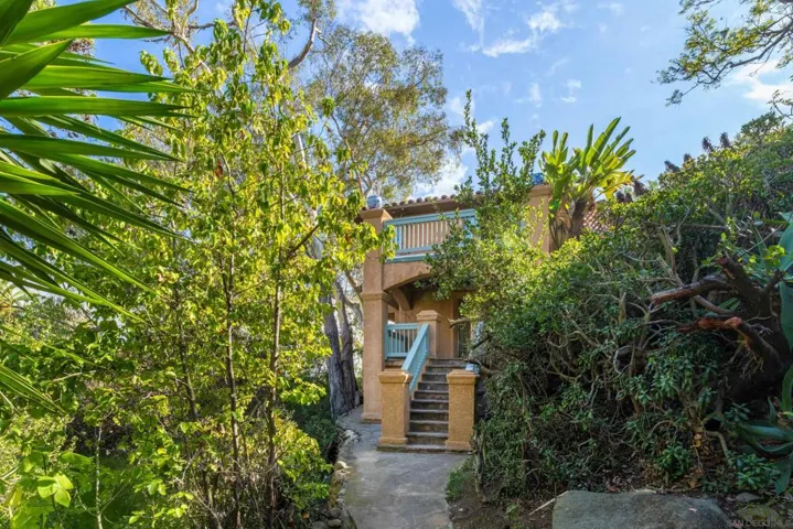 Tucked away in the heart of Point Loma, 3038 Udall Street is a charming Spanish-style retreat offering privacy, versatility, and panoramic city views. This two-story home features 3 bedrooms plus a flexible bonus room, ideal for an office, studio, or guest space. The entry level welcomes you with a bright living area and kitchen that open to expansive decks overlooking the city—perfect for entertaining or quiet evenings outdoors. Also on this level are the primary bedroom and bath, a secondary bedroom, and a guest bath, all framed by picture windows capturing the surrounding trees and views. Downstairs, enjoy wrap-around decks with stunning city vistas, a private bonus room, third bedroom, bathroom, and kitchenette with a separate entrance—ideal for a lock-off studio or ADU for guests or rental income. Perched on a peaceful hillside yet just a short stroll to Liberty Station, this home offers quick access to downtown San Diego, the airport, harbor, beaches, yacht clubs, and award-winning schools. Whether as a primary residence, first home, or lucrative short-term rental, this property embodies San Diego living—sunny, scenic, and centrally located. Listing includes three lots with ample potential to expand or build.