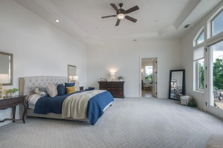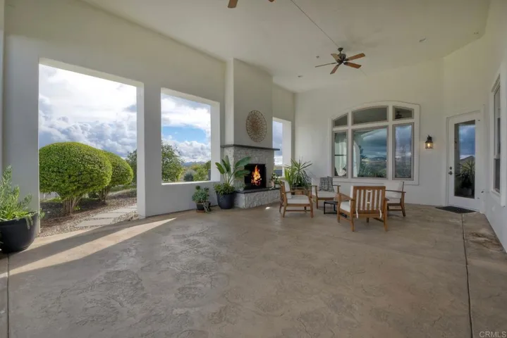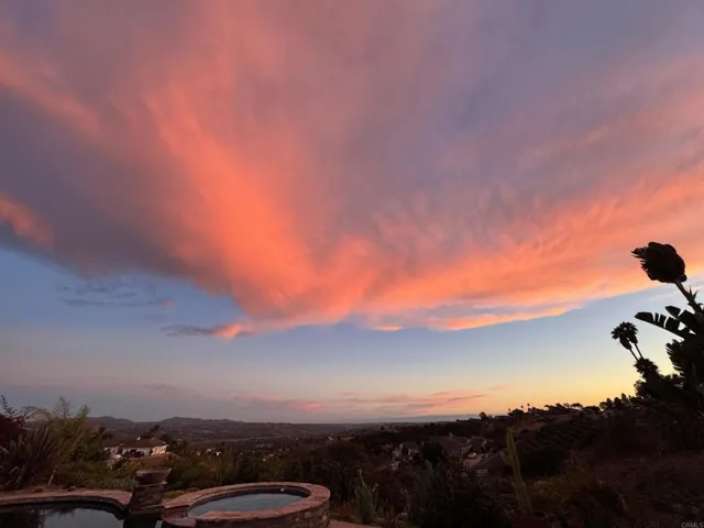 Nestled inside the exclusive gated Champagne Crest community, this exquisite single-story estate is a stunner! Offering 180° panoramic views stretching to the northeast and southwest—capturing rolling hills, vineyards, and spectacular sunsets. This stunning updated 4BR/5.5 Bath home with a detached casita is perched on 1.58 acres with complete privacy. Featuring multiple resort-style outdoor living areas, beach entry pool, three waterfalls, hot tub, fire pit, built-in BBQ, courtyard and a covered veranda ideal for entertaining. The modern Spanish Mediterranean inspired design offers all bedrooms with ensuite bathrooms, high ceilings, arched entry’s, expansive windows and a spacious chef’s kitchen that opens to the family room. The primary suite includes direct patio and pool access, a spa-style bath and sweeping southwest and sunset views. The detached casita with a full bath is ideal for use as a work space, gym or flex space for all your hobbies. Pride of ownership abounds in this custom built home. The property is an entertainers delight and a horticulturists dream with over 26 species of tree’s (non certified organically treated). A rare opportunity to enjoy privacy, elegance and panoramic Fallbrook scenery in a premier gated community. Fallbrook Winery and Monserate Winery adjacent.
