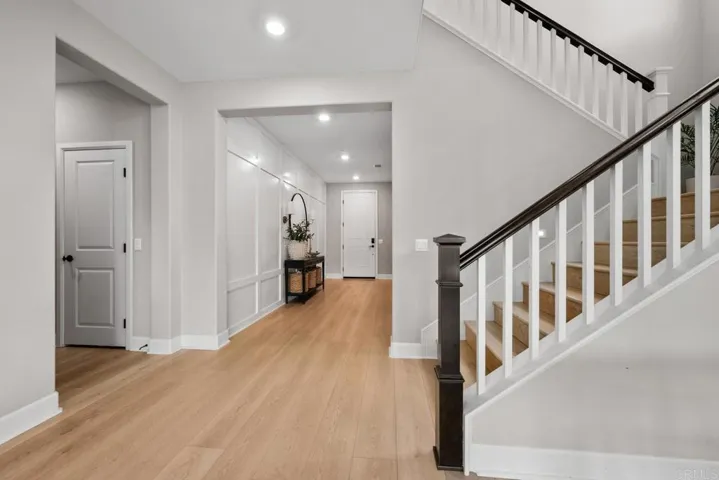 This stunning 4-bedroom, 4.5 bath home, located in the highly desirable Skylark community, offers modern living at its finest. Featuring a PAID OFF solar panel system, this home is energy-efficient and eco-friendly. With over $90,000 invested in premium landscaping and water filtration systems throughout, it is truly move-in ready. Spanning 3,175 square feet, the open-concept layout seamlessly connects the spacious living room, dining area, and gourmet kitchen, which boasts premium countertops, a sleek quartz backsplash, stainless steel appliances, and abundant cabinet space—ideal for cooking and entertaining. The first floor also includes a private room, perfect for family, guests, or even as an independent rental unit. Upstairs, the luxurious master suite offers a walk-in closet and a spa-like bathroom with dual vanities and a soaking tub, providing a peaceful retreat. Two additional bedrooms share beautifully appointed bathrooms, while the versatile loft space is perfect for a home office, playroom, or whatever your lifestyle needs. Step outside to enjoy the community’s playground dog park, and walking trails, all just a short stroll away. Located just 10 minutes from shopping at San Marcos Grand Plaza and Costco, and only a 5-minute drive to Palomar College, convenience is key. Golf enthusiasts will appreciate the proximity to nearby courses like Twin Oaks and Shadowridge. This home offers the perfect blend of comfort, style, and location—don’t miss the opportunity to make it yours!
