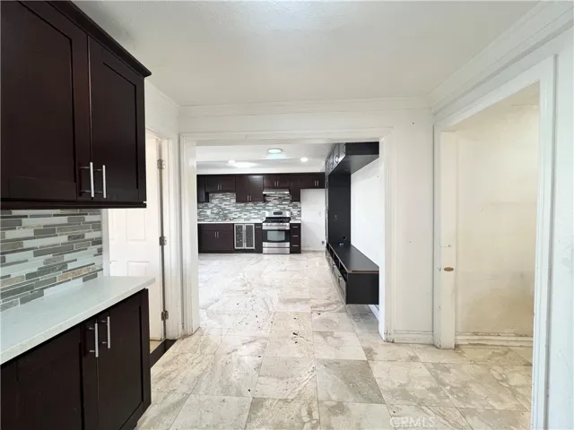 This uniquely configured property offers three distinct living areas and a generously sized yard featuring vinyl fencing in the front and side yard areas as well as wood fencing in the rear. The garage has been converted and currently functions as two bedrooms, a bathroom, and a kitchen. The middle portion of the home has also undergone modifications, including the addition of extra bedrooms and bathrooms. The rear of the home features a large kitchen with a wine refrigerator, stone flooring, and multiple bedrooms and bathrooms. Over time, the property has experienced numerous alterations, including additional bedrooms, bathrooms, and kitchen areas throughout. Seller makes no representations or warranties regarding any modifications, their permits, or current code compliance. Buyer(s) are strongly encouraged to conduct their own independent investigations to verify all information, including but not limited to permits, room count, square footage, and intended use, zoning, and city ordinances or required approvals. While the expansive configuration could potentially support an assisted-living–style setup, such use is strictly subject to city approval and may not be permitted. This statement is offered solely as a suggestion of possible use IF allowed by local regulations. Buyer(s) must confirm directly with the city regarding zoning, ordinances, and permits.