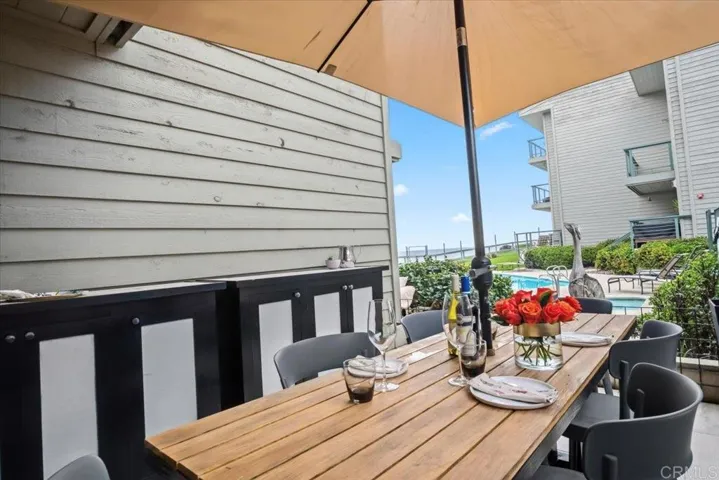 Welcome to Pacific Panorama! This beautiful 19 unit gated community is situated on the bluff and offers expansive ocean views all the way from La Jolla to Dana Point! This single level home is conveniently located on the ground level and offers two ensuite bedrooms and highly upgraded designer finishes throughout! Some of the many features include a Leicht Design kitchen, (known for modern aesthetics and high functionality) top of the line appliances, custom lighting, porcelain wood-look flooring throughout and a thoughtful use of space! Additional features include newish dual paned windows, 2 patios overlooking the sparkling pool to the ocean beyond, a covered carport with EV hookup plus easy access to the home. Pacific Panorama is ideally located to downtown Encinitas and all of the many restaurants, shops , Coaster Station, Library and to the pristine beaches of Swamis and Moonlight Beach! A wonderful coastal retreat for vacations or year-round living with friendly neighborly gatherings on the lawn to enjoy the breathtaking sunsets and gentle ocean breezes … A True Gem!