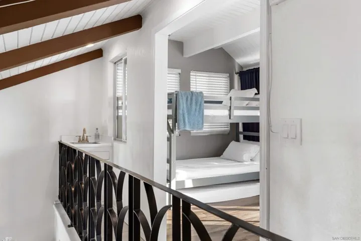 Welcome to true beach-living at 737 Whiting Court, nestled in the vibrant coastal fabric of Mission Beach — just steps from the sand, the scenic boardwalk, and the ocean. Location & Lifestyle Ideally situated in the 92109 zip code of Mission Beach — mere minutes from the shore, the Pacific Ocean, and the iconic beach “boardwalk.” *Enjoy the quintessential beach-town lifestyle: morning strolls on the sand, easy access to the water, and the relaxed coastal vibe that makes Mission Beach so desirable. * Within walking distance to the bustling beachfront amenities, local eateries, surf shops, and the recreation that draws locals and visitors alike. Property Highlights 2 bedrooms, 2 bathrooms + loft/optional third bedroom — a flexible layout ideal for guests, family, or a bonus retreat. Enjoy vaulted ceilings with original stained-glass accents, a 2-car garage, and an expansive rooftop deck perfect for relaxing, entertaining, or taking in the views. The loft enhances the usable space and works beautifully as a guest room, home office, or additional living area. * Charming touches including a ground-floor bedroom with its own en-suite bath** convenient access to the patio with outdoor shower-ideal for rinsing off after the beach. Open-concept kitchen and living area upstairs, bringing natural light and airy flow — great for entertaining or relaxing after a day by the water. Private upstairs deck (viewing deck) — a serene spot to take in ocean breezes, enjoy sunsets, or host gatherings. Built in 1978 — a vintage build that offers coastal character in a coveted location. Why This Property Stands Out This home offers a rare combination: the convenience and culture of Mission Beach living (boardwalk, beach, water-side lifestyle), with private touches like a loft and deck that many beachside units — often condos or rentals — don’t provide. A perfect balance of comfort, flexibility, and lifestyle — whether used as a full-time residence, vacation home, or income property. For buyers seeking a walkable, surf-and-sand lifestyle without sacrificing a traditional home layout, 737 Whiting Court delivers: a “home” rather than just a “unit,” yet still steps from the ocean. “Buyer to verify all information deemed important, including but not limited to square footage, lot size, zoning, property boundaries, permits, school districts, HOA fees and restrictions, the condition or functionality of all systems and appliances, etc. Seller and broker make no representations or warranties.”