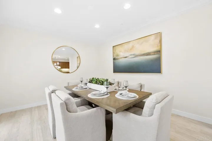 This stunning 4-bedroom, 3-bathroom Carrillo home in the heart of Del Sur seamlessly blends charming cottage-style architecture with modern upgrades, including owned solar. The open floorplan is designed for effortless living and entertaining, with features that make every space inviting and functional. The Great Room welcomes you with a gas fireplace, plantation shutters, and crown molding that extends throughout the entire home. Sliding glass doors open to the courtyard, creating a perfect space for indoor/outdoor entertaining. The chef’s kitchen is equipped with granite countertops, stainless steel appliances, a 5-burner gas stovetop, and a large island with barstool seating. A spacious dining room adjacent to the kitchen opens to the courtyard. A desirable first-floor bedroom offers a cozy bay window nook and an adjacent bathroom featuring a walk-in glass shower, making it ideal for guests or multi-generational living. The two-story foyer adds a touch of grandeur as you move through the home. Upstairs, a versatile loft provides the perfect space for relaxing, working from home, or a playroom. The spacious primary suite is flooded with natural light from numerous west-facing windows, offering picturesque sunset views. The spa-like en-suite bathroom boasts dual vanities, an oversized soaking tub, a spacious walk-in closet, and a large glass-and-tile shower with a built-in bench. Two additional upstairs bedrooms are bright and generously sized, sharing a bathroom with a dual vanity and shower/tub combination. The upstairs laundry room adds convenience with a sink, ample cabinetry, and a large linen closet. Recent upgrades include new wood flooring added throughout the majority of the home. The attached garage is equipped with a 240-volt outlet for EV charging, adding to the home’s modern conveniences. The family-friendly Del Sur community offers an unbeatable lifestyle with 14 parks, 11 resident-only pools, a dog park, and numerous walking trails. You’re just a short stroll from three community parks and the Del Sur Town Center, which features Target, Starbucks, restaurants, shopping, gyms, groceries, and more. Located in the award-winning Poway Unified School District, top-rated schools—Del Sur Elementary, Oak Valley Middle School, and Del Norte High School—are all within two miles. Outdoor enthusiasts will appreciate the area’s 28 golf courses and four hiking reserves all located within 10 miles. With easy access to CA-56 and I-15 freeways, this home offers the perfect combination of convenience and tranquility in one of San Diego’s most desirable neighborhoods.