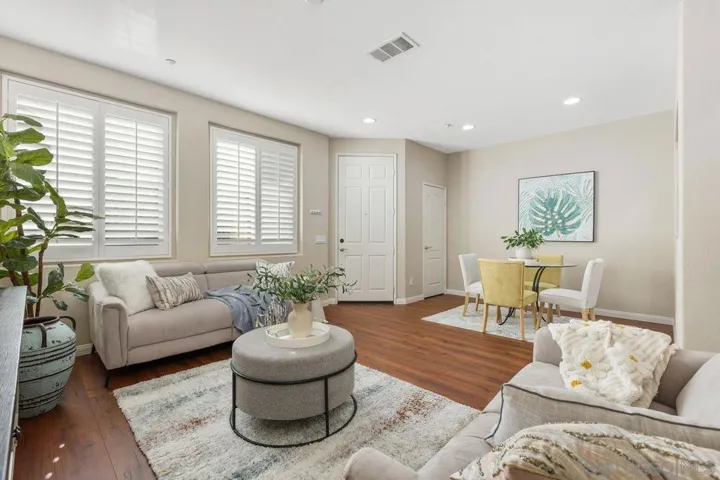 Welcome to this beautifully updated 3 bedroom, 2.5 bathroom townhome in the heart of 4S Ranch. With 1,428 square feet of comfortable living space, this home features new luxury flooring downstairs, granite kitchen counters, and newer stainless steel appliances including a refrigerator and dishwasher. Plantation shutters throughout add a classic, upgraded touch. The layout offers a bright and functional main level, while all three bedrooms plus a loft are located upstairs, including a light filled primary suite with its own bathroom and walk-in closet. An attached two car garage with an additional storage closet and full sized laundry room upstairs add everyday convenience. The home includes a private front patio that provides a comfortable outdoor space for relaxing or small gatherings. The Ravenna community also offers a pool, spa, and BBQ area for residents to enjoy. 4S Ranch is known for its top rated Poway Unified schools and desirable neighborhoods. Nearby shopping options include 4S Commons with Ralphs, Jimbos, World Market, restaurants, coffee shops, fitness centers, and a range of services. Del Sur Town Center with Target and additional dining choices is also close by. Parks, playgrounds, and scenic walking trails are available throughout the community, offering accessible outdoor recreation. A comfortable and well located home with easy access to schools, shopping, parks, and everyday conveniences. This is a must see!