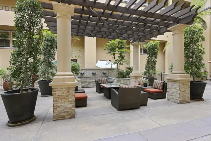 Expansive 2-bedroom, 2.5-bath townhome in the heart of the Marina District at City Walk! Offering 1,922 sq. ft., this residence features one of the LARGEST floor plans in the community and surrounding area. Interior highlights include wide-plank birch distressed wood floors, crown molding, high ceilings, and arched doorways. The upgraded kitchen features granite countertops, stainless steel appliances, a breakfast bar, wine chiller, and brick accent wall/backsplash. The main living and dining area opens to a balcony fitted with newly installed French screens and pleasant neighborhood outlooks. The second level features two spacious primary suites, each with its own private balcony. Bathrooms include granite counters, dual sinks, and mosaic tile flooring. Additional features include fresh interior paint, elegant Italian Thassos and Carrara marble accents, two side-by-side parking spaces, and four deep, locked storage closets on the balconies. Located steps from the marina, newly developed RaDD, restaurants, shops, Petco Park, Seaport Village, Little Italy, and only one block from the dog park. Community amenities include two formal building entrances, three landscaped atriums with seating and firepits, a gym, bike storage, weekday on-site management, and VA approval.
