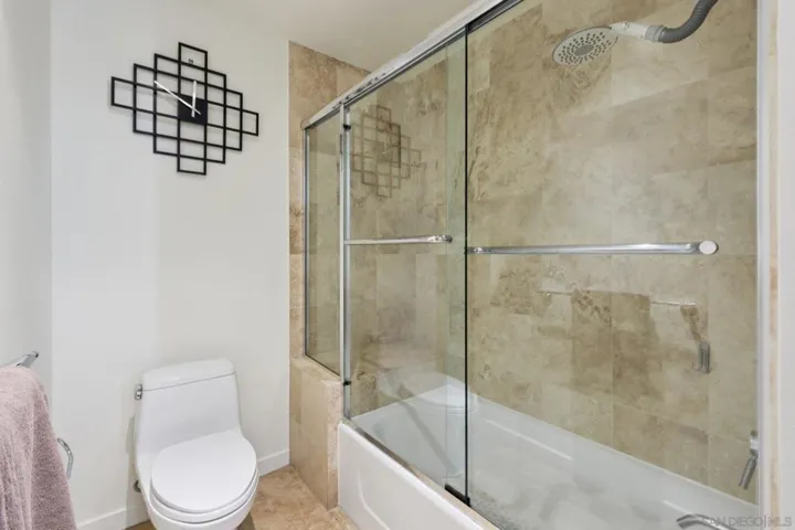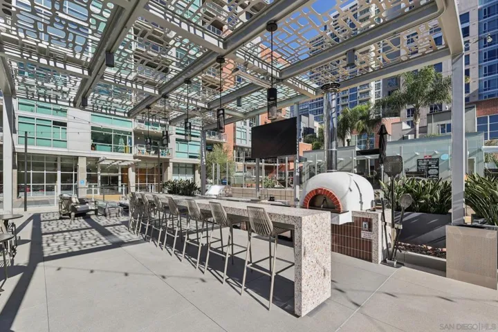 Experience elevated urban living in this beautifully updated residence at The Mark, one of East Village’s premier luxury towers. Ideally located just steps from Petco Park yet positioned away from noise and traffic, this home offers the perfect balance of excitement and comfort. The Gaslamp Quarter, Little Italy, and San Diego’s waterfront are all just moments away, placing the best of downtown at your doorstep. Inside, the open floor plan showcases sweeping city views. The spacious living area includes a built-in media console and a flexible dining space that can also serve as a workspace—perfect for taking in the skyline while you dine or work. A covered balcony extends the living area outdoors with expansive city and peek-a-boo bay views. The generous bedroom offers room for a desk and features a walk-in closet with a custom California Closet system. The oversized spa-like bathroom is accessible from both the bedroom and living area. The open kitchen is ideal for entertaining, complete with stone countertops, Studio Becker soft-close cabinetry, stainless steel appliances, breakfast seating, and abundant storage. Notable upgrades include an HVAC system with UV filtration, Ecobee thermostat, newer countertops, newer refrigerator, and full-size LG front-loading washer and dryer. The Mark offers exceptional amenities – concierge, newly updated saltwater pool/spa, upgraded courtyard with pizza oven, BBQs, lounge areas, state-of-the-art fitness center, and conference room. VA approved, this home offers resort-style living in the heart of Downtown San Diego.