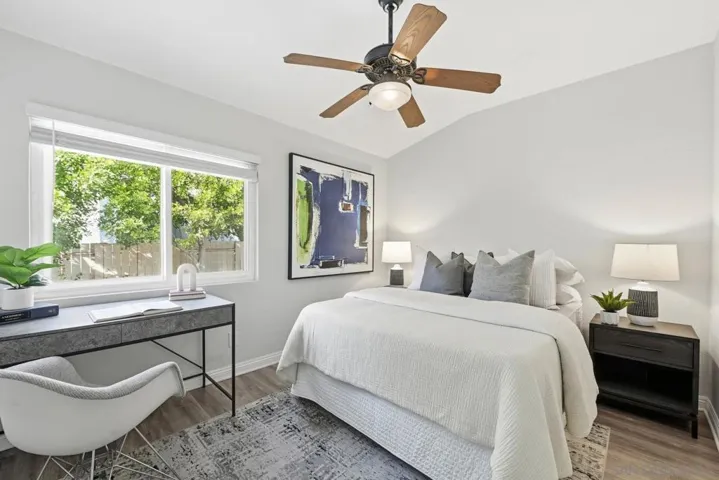 Absolutely Gorgeous Poway home with a modernized pool and spa and a 3 car garage on a cul-de-sac! No expense spared on a brand new Chefs European style kitchen with custom walnut grain cabinetry, bifold window, a huge quartz counter leading into newly expanded breakfast area with a slide and stack glass door. Newer vinyl flooring throughout. Fully paid solar and tile roof. Vaulted ceilings. Spacious primary suite with views of Twin Peaks Mountain. Resort style backyard with stunning pool, newer barbecue setting, lush garden with orange, lime, lemon trees and cozy pergola with bench tucked into the foliage, easy maintenance turf, and a shady covered patio with brick pavers. Potential RV Parking and Award-winning Poway Unified schools! No HOA or Mello Roos fees!
