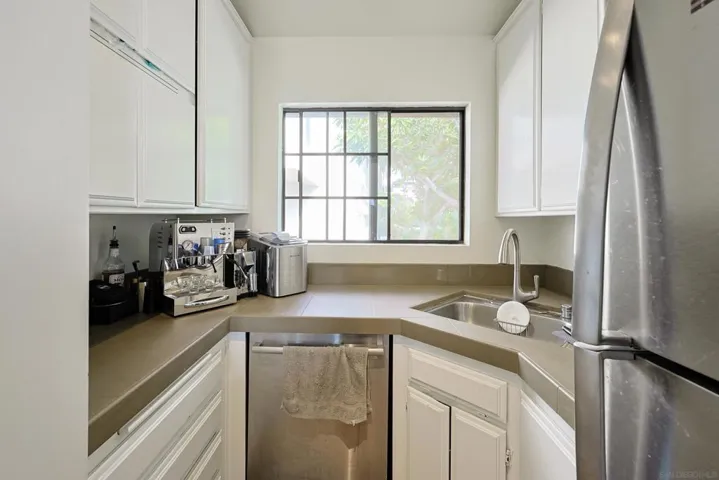 Well-maintained and thoughtfully designed two-story 1-bedroom, 1.5-bath residence located in the heart of Linda Vista, offering exceptional access to San Diego’s most desirable destinations. This centrally located home provides quick freeway access and is just minutes from the beach, Fashion Valley Mall, Downtown San Diego, and the airport, making it an ideal primary residence or investment opportunity. Upon entry, the home features a private bedroom and full bathroom on the main level, creating a quiet and functional retreat. The upper level opens to the main living area with an inviting living room, updated kitchen, and convenient half bath—perfect for everyday living and entertaining. The unit has been recently refreshed with new interior paint and durable LVP flooring, giving it a clean, move-in-ready feel. The attached garage is easily accessed via interior stairs, adding everyday convenience. Offered for the first time since the early 2000s, this property presents a rare opportunity to own a well-cared-for home in a highly central San Diego location with excellent long-term value.