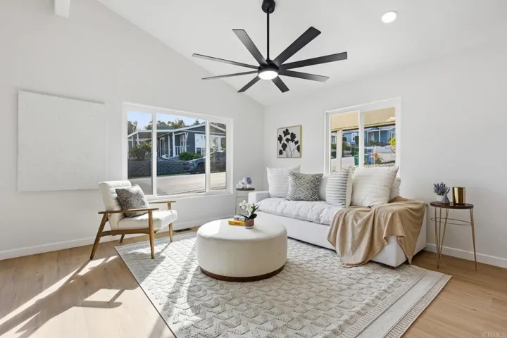 Located in a desirable gated 55+ community in coastal Carlsbad, this beautifully renovated home offers modern comfort and an open, light-filled layout. The spacious living and dining areas flow seamlessly into a huge open kitchen, creating an ideal space for everyday living and entertaining. Abundant natural light enhances the home’s inviting atmosphere, while thoughtful updates elevate both style and functionality. Recent renovations include new laminate flooring throughout, updated lighting and plumbing fixtures, refreshed bathrooms, and brand-new kitchen appliances. The kitchen features generous counter space and ample cabinetry, making it both practical and visually appealing. Both bedrooms are well-proportioned, with the primary suite offering an en-suite bathroom for added privacy and convenience. Enjoy the peace of mind that comes with a gated community, along with the lifestyle benefits of a 55+ neighborhood in one of North County’s most sought-after locations. Conveniently situated near shopping, dining, beaches, and major roadways, this move-in-ready home presents an excellent opportunity to enjoy low-maintenance living in Carlsbad. A rare find that combines location, upgrades, and community amenities—this home is truly a standout.