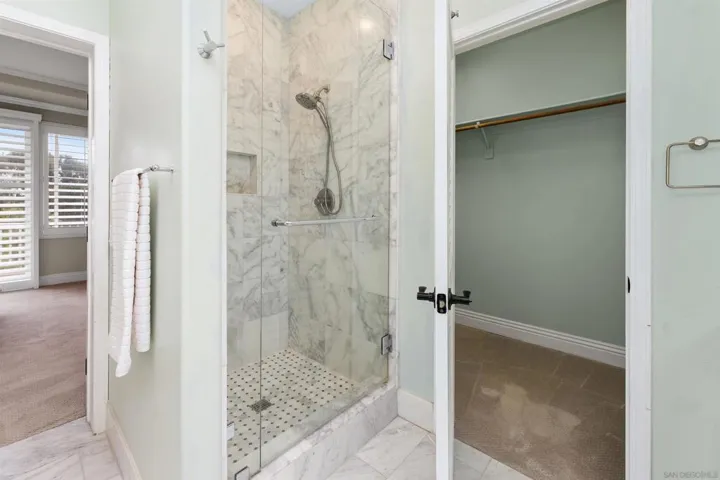 SUBMIT ALL REASONABLE OFFERS. A rare opportunity in La Jolla’s highly coveted gated community of Ridgegate! This beautifully upgraded home features the neighborhood’s most desirable & rarely available floor plans. Soaring 20+ ft. ceilings, Italian marble flooring, crystal chandelier entry, and custom wrought-iron staircase. The newer remodeled kitchen includes stainless appliances & a 10ft. center-island perfect for entertaining. See Supplement below. This home offers 4 br. plus loft, 3.5 baths, hardwood flooring & marble bathrooms w/granite countertops. The spacious primary suite includes dual walk-in closets, remodeled marble bath, marble fireplace & private deck. A ground-floor bedroom with en-suite bath is ideal for guests. A dramatic living/dining room and oversized family room complete the main level. Upstairs are 2 generous bedrooms, full bath, and a large laundry room. This well maintained home boasts significant recent upgrades, brand new HVAC systems, (furnaces and condensers) a Rheem water heater, 2 reverse osmosis filtration systems. Sun Trek solar film, hard wired security system and 22 fully paid Tesla solar panels. The garage includes built-in storage and EV charging readiness. Community Amenities include heated pool/spa, clubhouse, sports court, BBQ area, playground, and private park — all with some of the lowest HOA fees in La Jolla. This home is also zoned for top-rated, award-winning schools, including the highly esteemed La Jolla Elementary.