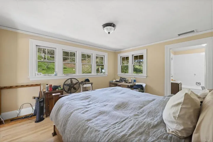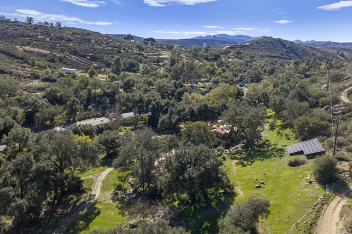 Phenomenal 1915**, Craftsman estate on 16± acres with entry via your private bridge over a creek. So much to list: solar panel power, a vineyard, privacy, character, and various forms of income potential with agricultural zoning, ADU options, and two parcels. The home is stunning with 6 bedrooms, 3.5 baths, and an amazing office. A charming screened porch welcomes you as you enter through the front door, while a private patio out back is perfect for entertaining. It may qualify for Mills Act status, but Seller cannot guarantee. No historic reports available. The hardwood floors and remarkable Craftsman details make this quality home shine. The front door opens to a massive fireplace and inviting great room. The chef’s kitchen features high end appliances with double ovens, Wolf gas cooking, a Viking warming drawer, ice machine, and oversized pantry. Two bedrooms with a full bath on the first level offers multigenerational living, or other varied and flexible options. Two APNs total the 16 acres with about 2 acres of gorgeous landscaping and an acre of mostly cabernet sauvignon vines that typically produce two to six barrels of wine each year. Enjoy multiple fruit trees, including 4 pomegranate bushes, 5 olive trees, 5 walnut trees, 2 orange trees, 1 grapefruit, 2 pluot trees and 1 lemon tree with irrigation and room for a lot more. There is a cozy firepit, great spots to camp, two shooting ranges, trails, paths, Zen garden, pond and wildlife galore. Wander your own property on bikes, a four-wheeler, or other fun outdoor toys. Maybe open your own winery/vineyard, or agricultural food stand. There are many options as it is zoned Agricultural A72 with an “O” designator; the property may offer options for additional ADUs or another home on the second parcel—buyer to verify all possibilities with the County of San Diego. Other helpful info: two wells, 45,000 gallon tank for irrigation water; 30,000 gallon holding tank for house water; two fire main hoses from the irrigation tank; garage has a pit for working on vehicles. Outbuilding for livestock management. Electrical and water at the pasture site where a barn previously existed (gravel area on second lot). Farm and vineyard equipment available and negotiable. Water softener. Automatic generator connected to propane. Propane tank. ***Records show 1950 construction, but that is due to lost records. Working on finding more accurate information for 1915 construction.