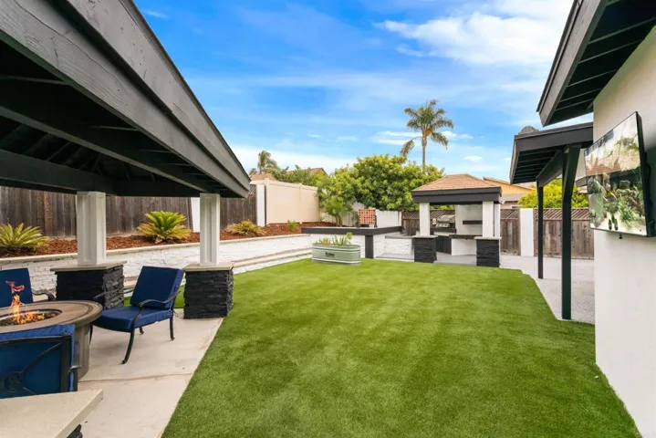 Welcome to this beautifully reimagined 4-bedroom, 2-bathroom home nestled in a quiet, highly desirable Clairemont neighborhood. Thoughtfully renovated from top to bottom, this residence blends modern design with everyday functionality—perfect for both relaxed living and effortless entertaining. Step inside to discover brand-new luxury vinyl plank flooring flowing throughout, complemented by stunning quartz countertops and a chef-inspired kitchen featuring a commercial-grade oven—ideal for cooking enthusiasts and hosting memorable gatherings. The spacious layout opens seamlessly to a low-maintenance, turfed backyard, designed for year-round enjoyment, entertaining, or play. The primary suite is a true retreat, showcasing an elevated spa-like bathroom with elegant porcelain tilework and a striking freestanding soaking tub. Additional highlights include a convenient washer and dryer hookup in the garage, electric vehicle charging capability, and upgrades that enhance both comfort and efficiency. The solar is paid in full so enjoy the convenience of very low electric bills. Located near award-winning schools and tucked into a peaceful, well-established community, this home offers the perfect balance of privacy, style, and convenience—just minutes from everything San Diego has to offer. This is a home you truly need to experience in person.