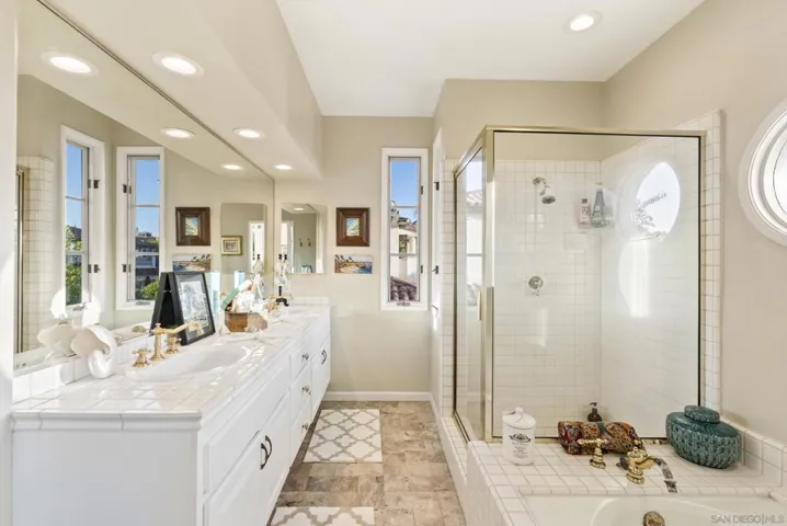Exquisite Mediterranean home features soaring ceilings, floor to ceiling glass windows, and a large backyard entertainment space serving up our easy Southern California indoor/outdoor lifestyle. Come home to lounge on the terrace or to pamper yourself in either of the ensuite baths. Set behind community gates on the La Jolla Farms bluff for year-round enjoyment of our ocean climate. Secured behind the gate community of Blackhorse, at an exceptional value!