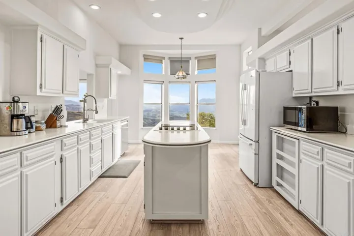 Views! Views! Views! First time on the market and perched high above it all, this extraordinary mountaintop retreat offers sweeping panoramic and expansive views that stretch from eastern sunrises to western sunsets, with views reaching to Downtown San Diego, La Jolla, and beyond. Designed for comfort and accessibility, the single story layout features wide doorways and hallways, making everyday living effortless. Natural light pours in through skylights throughout the home, highlighting fresh interior paint, new luxury vinyl plank flooring, and new carpet in the bedrooms. Nearly every window frames a view, creating a constant sense of openness and serenity from the living room, family room, dining room, and eat in kitchen. In the main home, the thoughtfully designed floor plan includes dual primary bedrooms, each offering privacy and comfort, plus a third bedroom and three full bathrooms. One primary suite includes a flexible bonus space for a home office, gym, or quiet retreat. New bathroom vanities and soaking tubs add a spa inspired feel, while plentiful closet storage keeps everything organized. The home includes attached guest quarters, ideal for multigenerational living, guests, or income potential. This unit features one bedroom, a large bathroom, an eat in kitchen, and views that capture unforgettable sunsets. A private deck creates a peaceful outdoor escape, offering comfort and independence while remaining conveniently connected to the main residence. Step outside to your private oasis where a PebbleTec pool and hot tub overlook panoramic east facing views, perfect for tranquil relaxation or entertaining under the stars. At the base of the property, a large, usable flat meadow provides rare and versatile space, perfect for a shop, animals, gardens, recreation, and more. Every moment here feels peaceful and deeply connected to the surrounding natural beauty, while still being approximately 15 minutes to the conveniences, shopping, dining, and amenities of Rancho San Diego. This location is also just 5 minutes from Rustic Ridge Vineyards and 8 minutes from Granite Lion Cellars, two of Jamul’s top wineries. Modern efficiency meets long term peace of mind with owned solar and Tesla batteries, central heat and air, a 50 year roof warranty, and the added benefit of being the local WiFi hub, providing free internet service. Surrounded by protected open space and miles of hiking trails in the Hollenbeck Canyon Wildlife Area, this property offers rare privacy, room to breathe, and flexibility of land use without sacrificing convenience or access to nearby amenities. This is more than a home. It is a front row seat to nature, sunsets, privacy, and a lifestyle that feels both grounded and expansive. A must see!